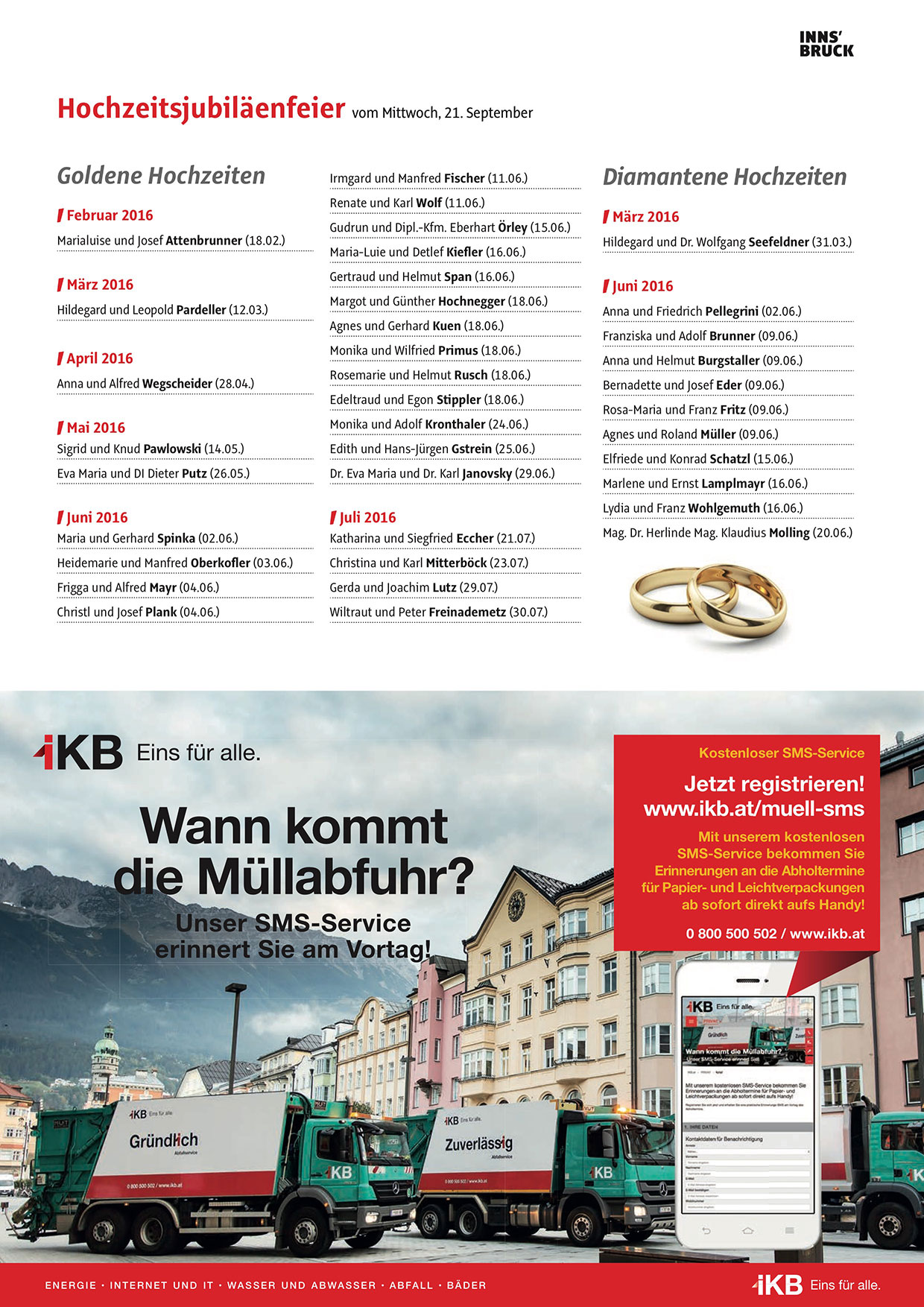 Hochzeitsjubiläenfeier vom Mittwoch, 21. September