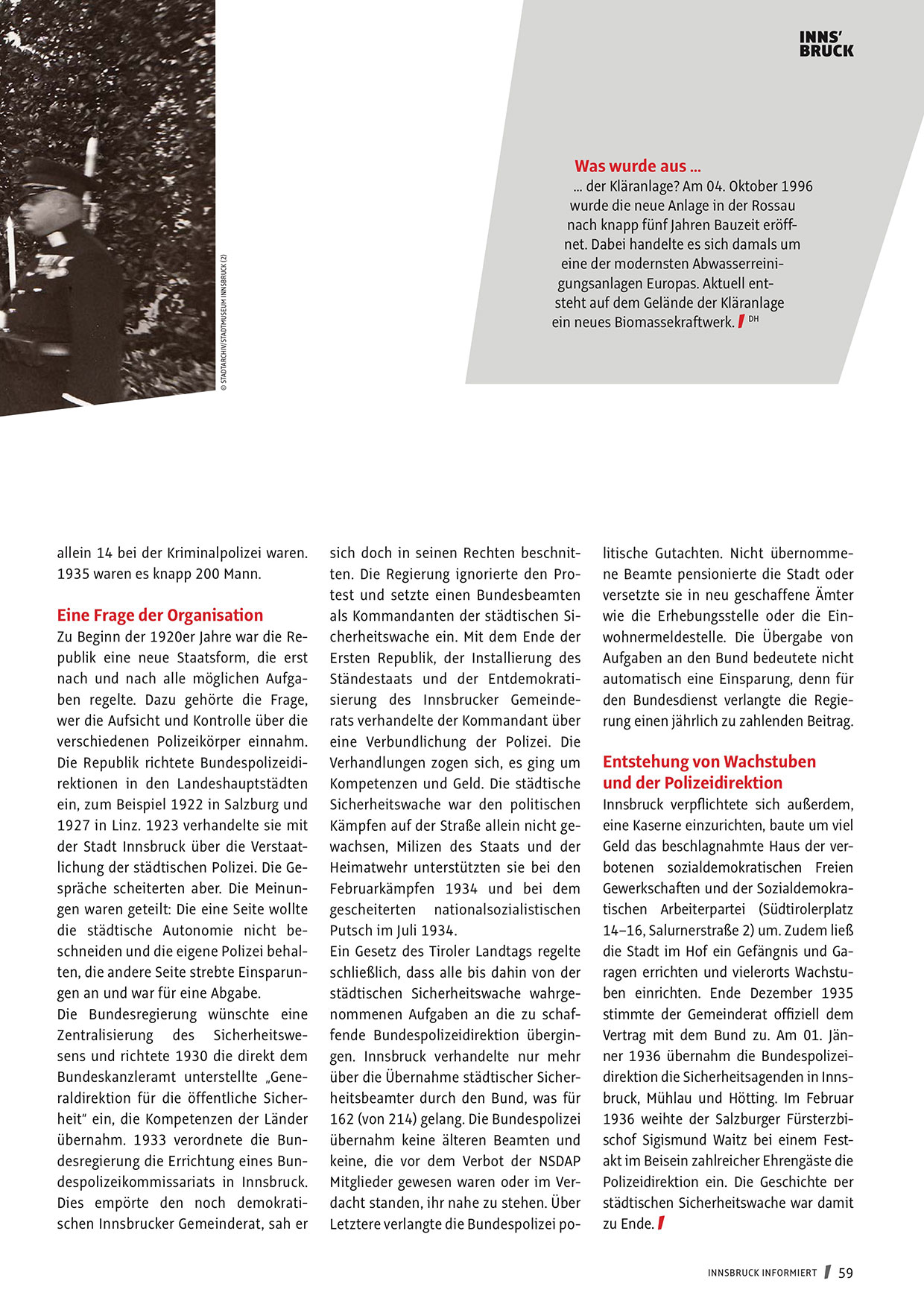 Vertrag mit dem Bund zu. Am 01. Jänner 1936 übernahm die Bundespolizeidirektion die Sicherheitsagenden in Innsbruck, Mühlau und Hötting. Im Februar