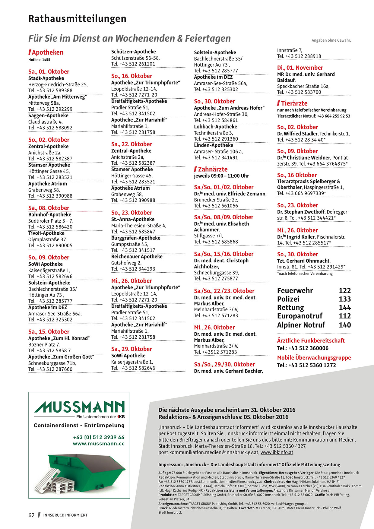 Impressum: „Innsbruck – Die Landeshauptstadt informiert“ Offizielle Mitteilungszeitung