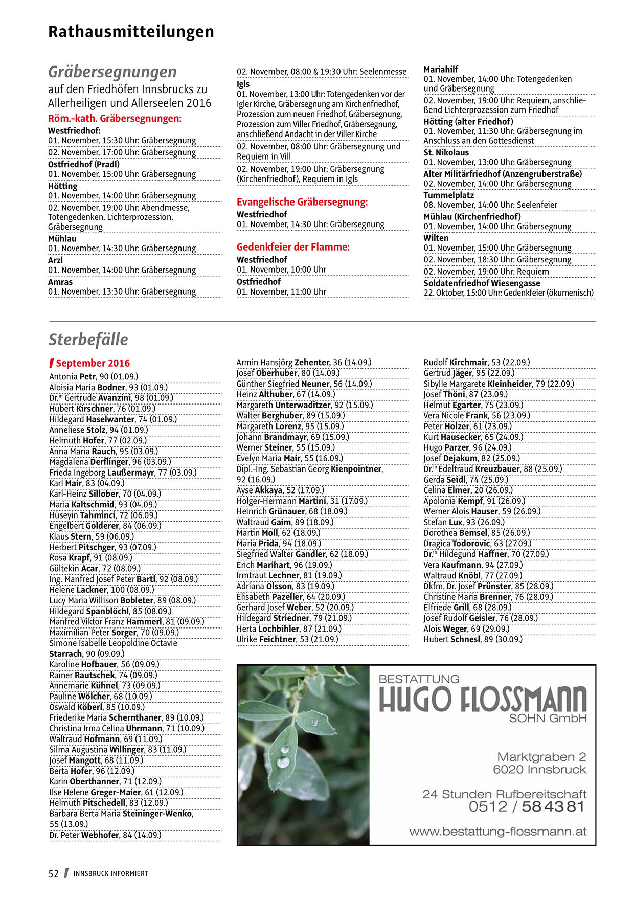 auf den Friedhöfen Innsbrucks zu