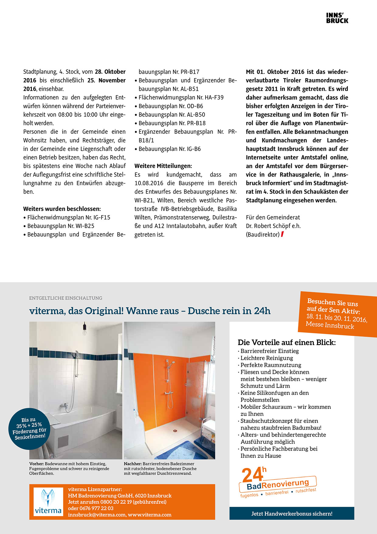 bisher erfolgten Anzeigen in der Tiroler Tageszeitung und im Boten für Tirol über die Auflage von Planentwürfen entfallen. Alle Bekanntmachungen