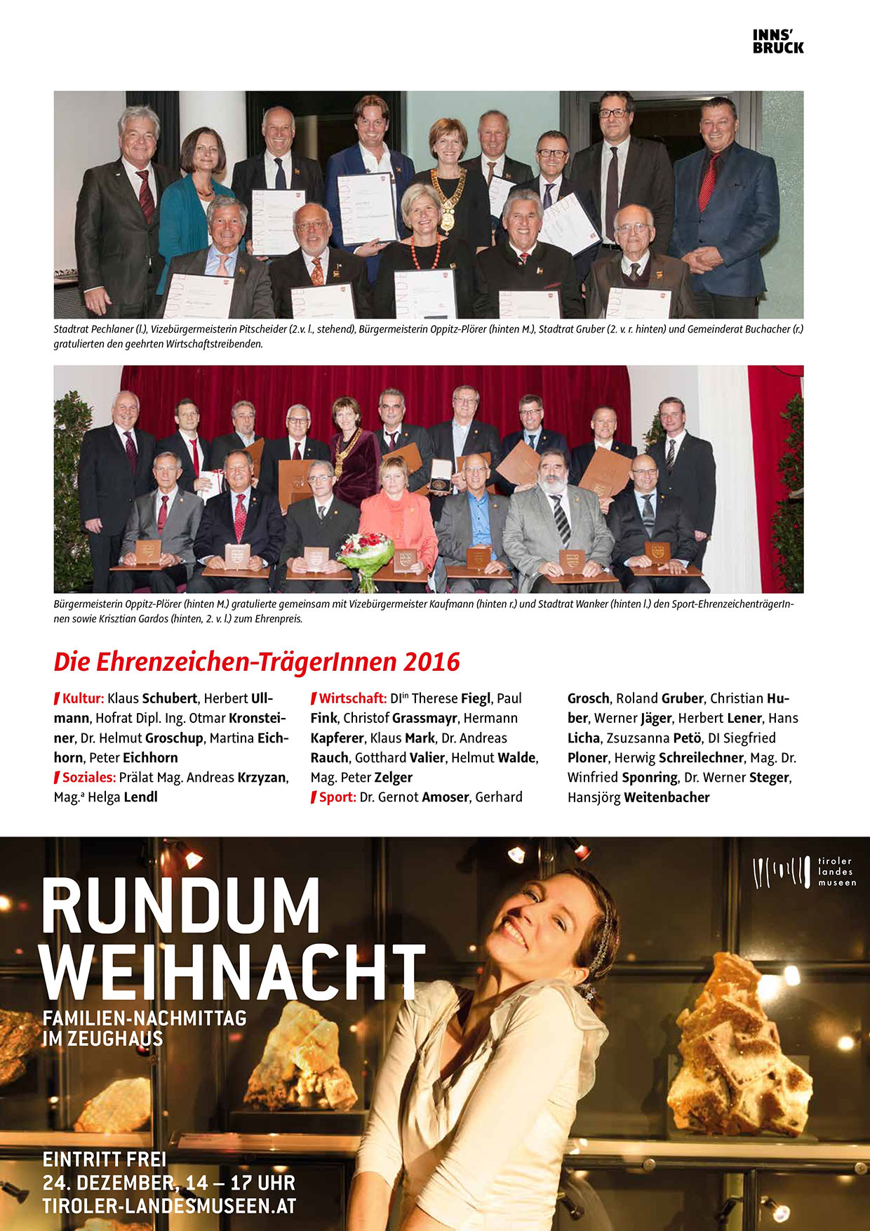Bürgermeisterin Oppitz-Plörer (hinten M.) gratulierte gemeinsam mit Vizebürgermeister Kaufmann (hinten r.) und Stadtrat Wanker (hinten l.) den Sport-EhrenzeichenträgerInnen sowie Krisztian Gardos (hinten, 2. v. l.) zum Ehrenpreis.