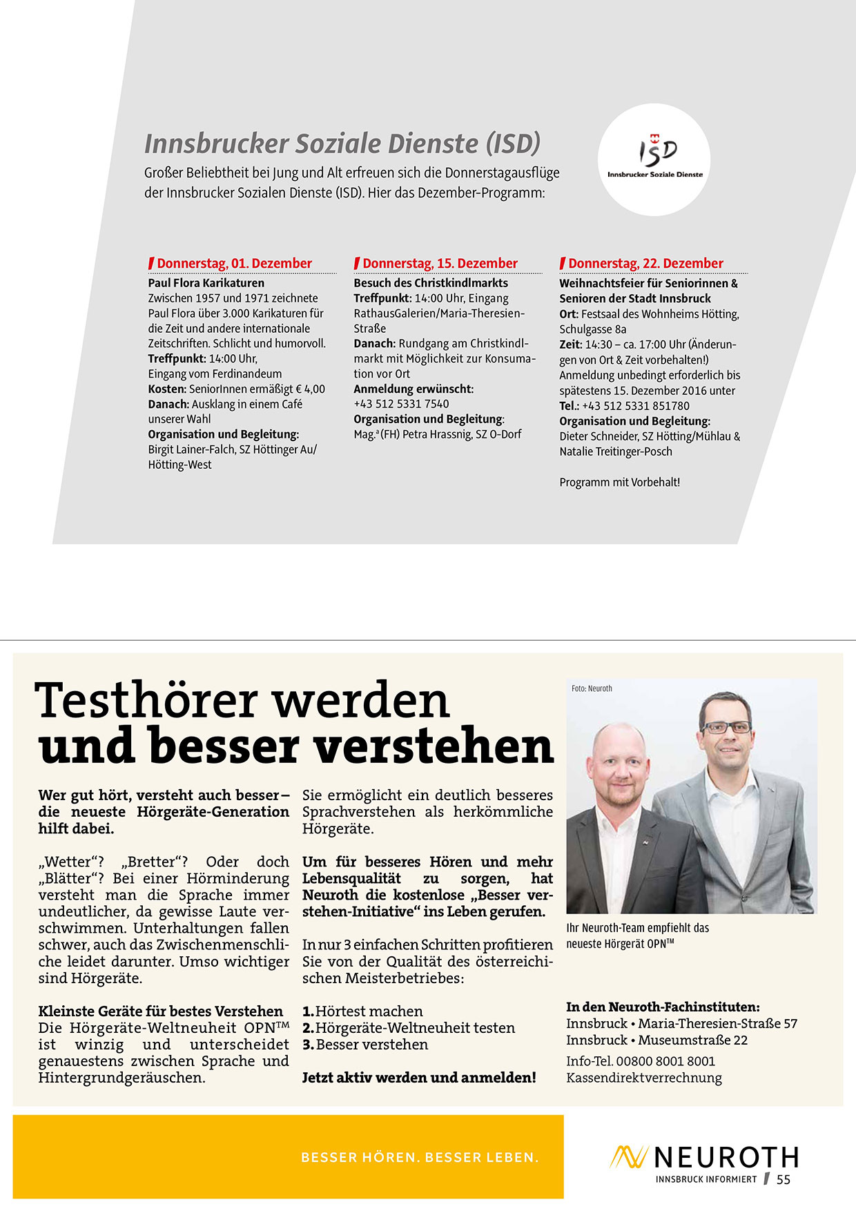 der Innsbrucker Sozialen Dienste (ISD). Hier das Dezember-Programm: