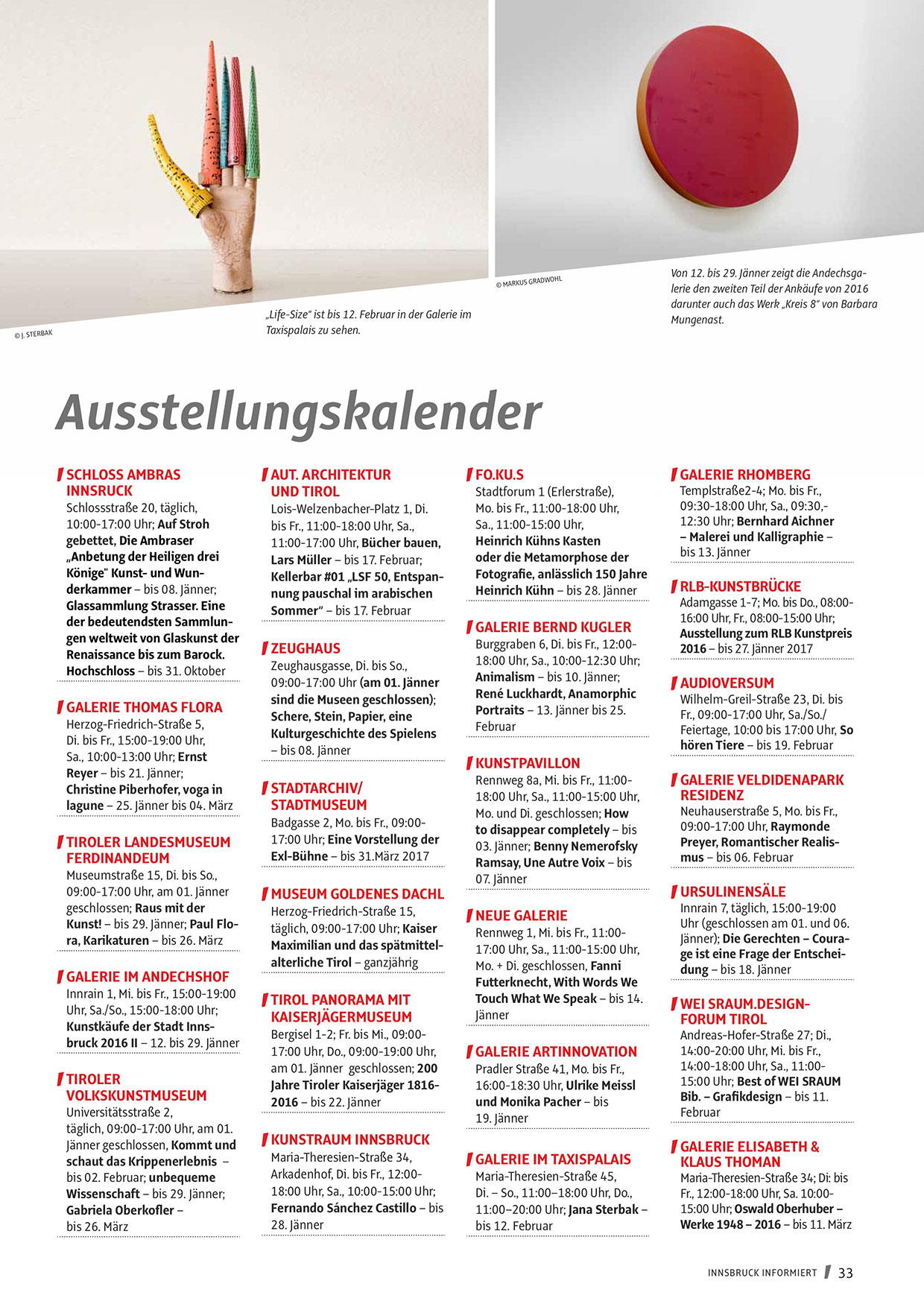 Kunstkäufe der Stadt Innsbruck 2016 II – 12. bis 29. Jänner
