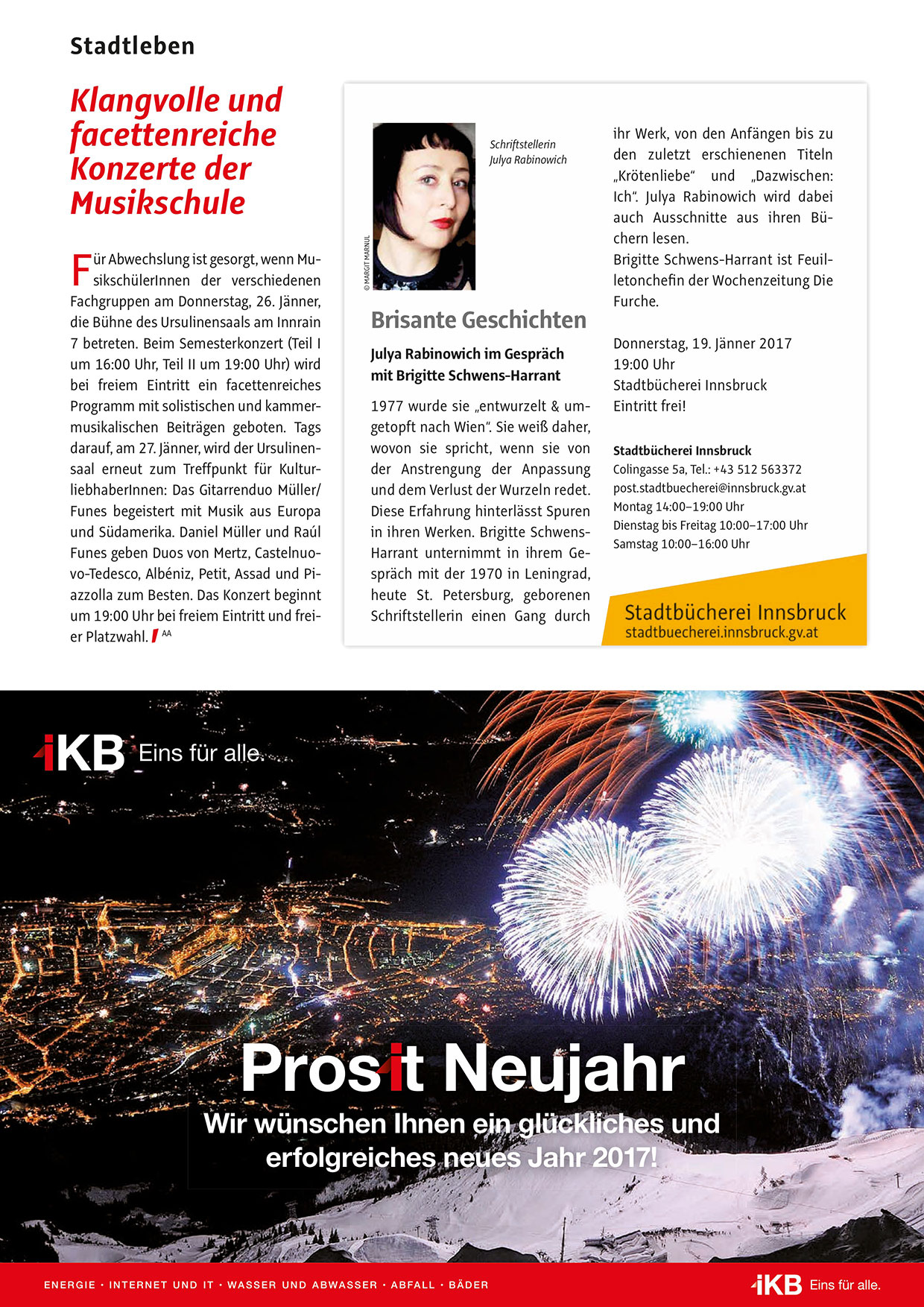 darauf, am 27. Jänner, wird der Ursulinensaal erneut zum Treffpunkt für KulturliebhaberInnen: Das Gitarrenduo Müller/
