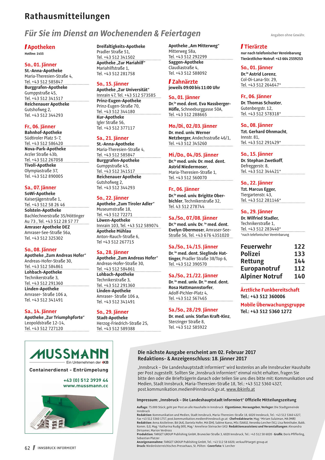 Impressum: „Innsbruck – Die Landeshauptstadt informiert“ Offizielle Mitteilungszeitung