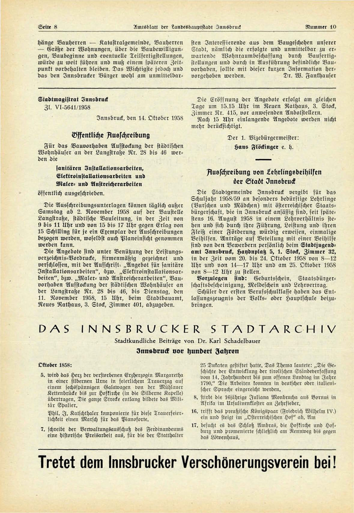 (Burschen un>d Mädchen) mit österreichischer Staatsbürgerschaft, die in Innsbruck ansässig sind, seit spätestens 16. August 1958 in einem Lehrverhältnis stehen und sich durch ihre Führung, Leistung und ihren