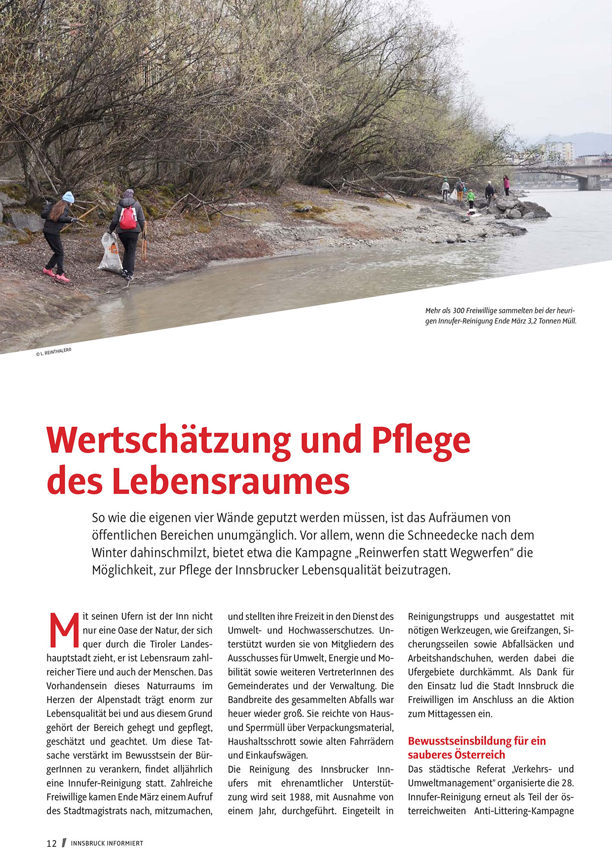 Möglichkeit, zur Pflege der Innsbrucker Lebensqualität beizutragen.
