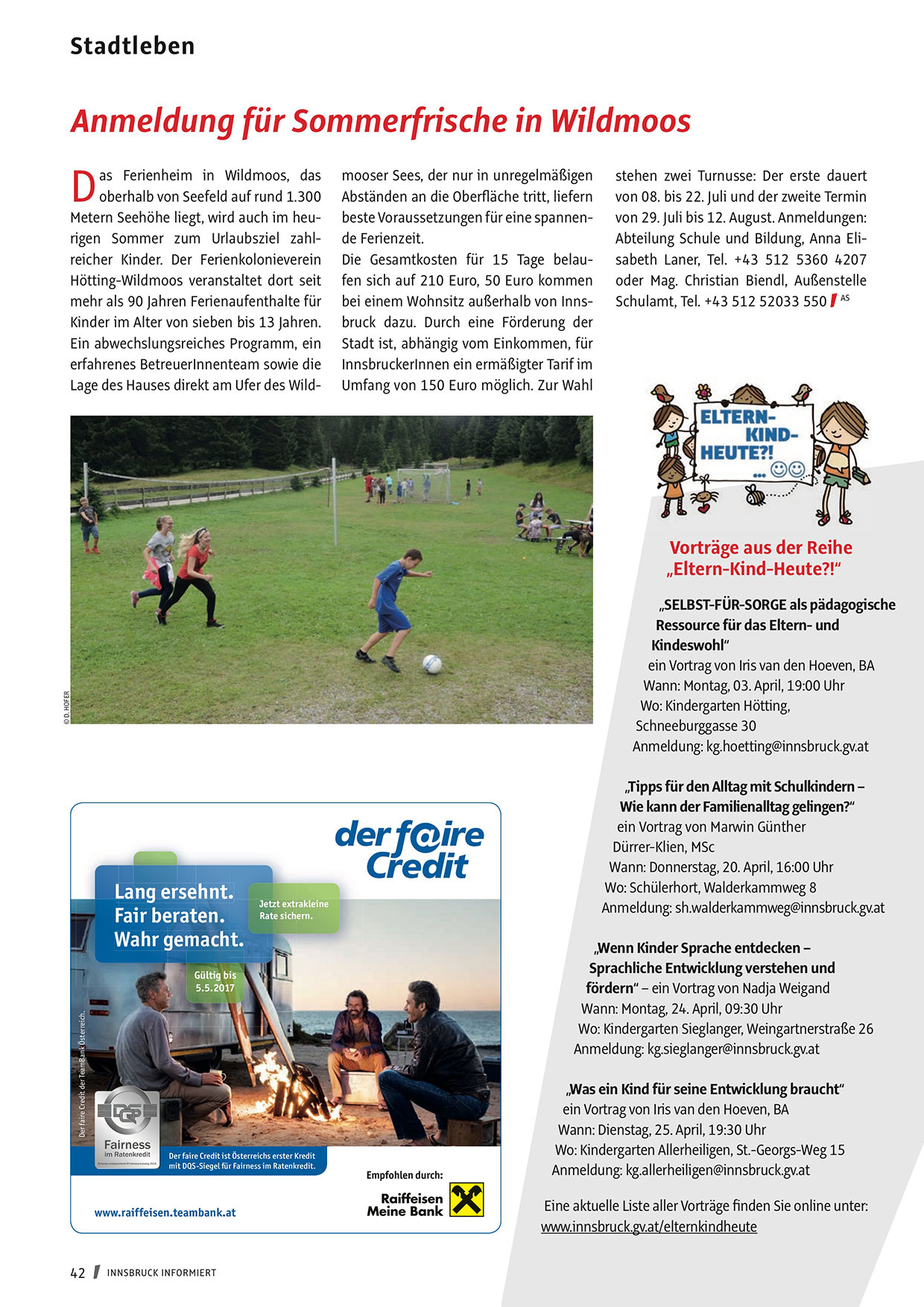 Anmeldung: kg.allerheiligen@innsbruck.gv.at