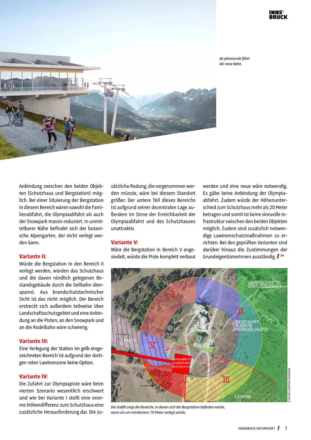 Wäre die Bergstation in Bereich V angesiedelt, würde die Piste komplett verbaut