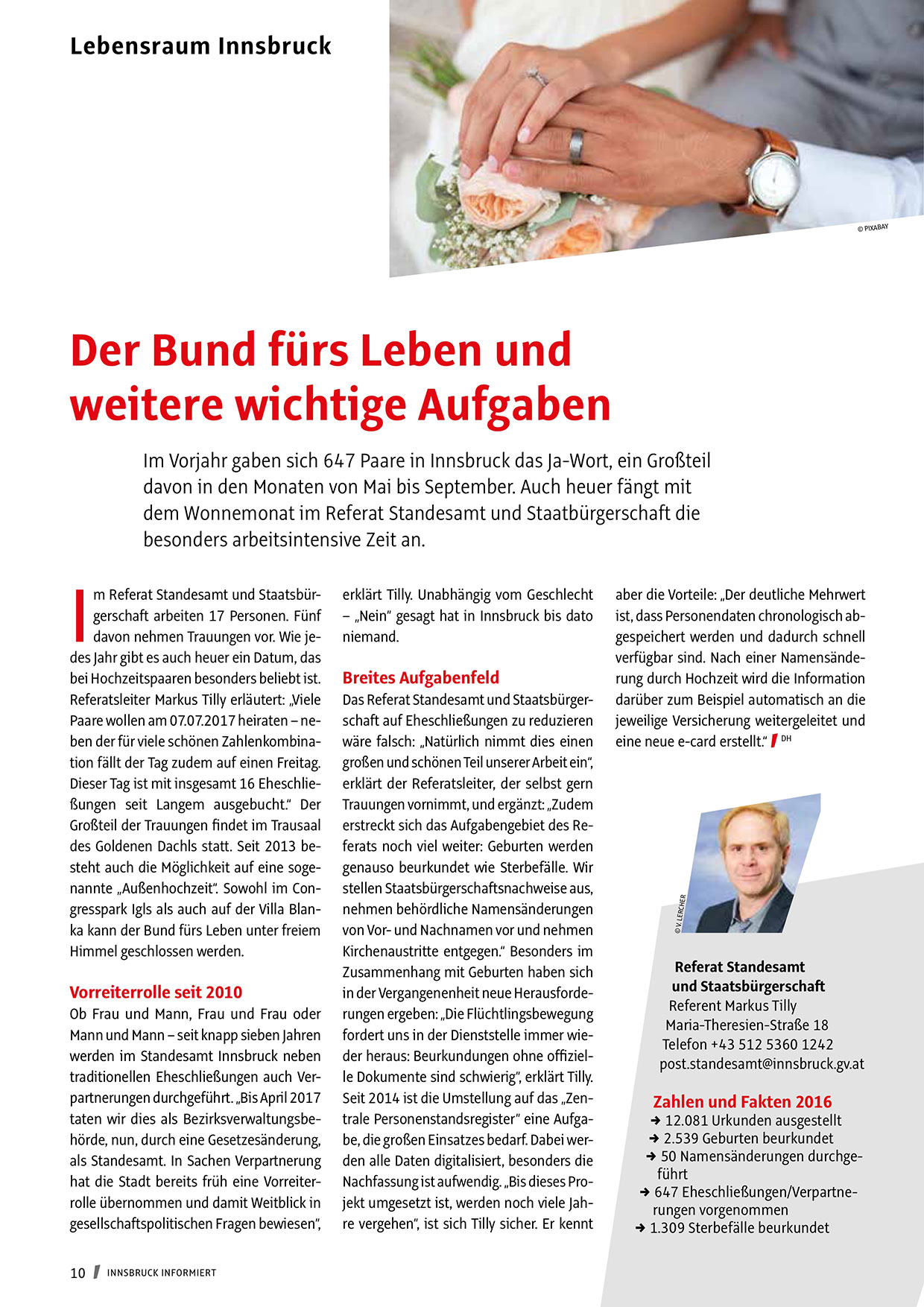 m Referat Standesamt und Staatsbürgerschaft arbeiten 17 Personen. Fünf