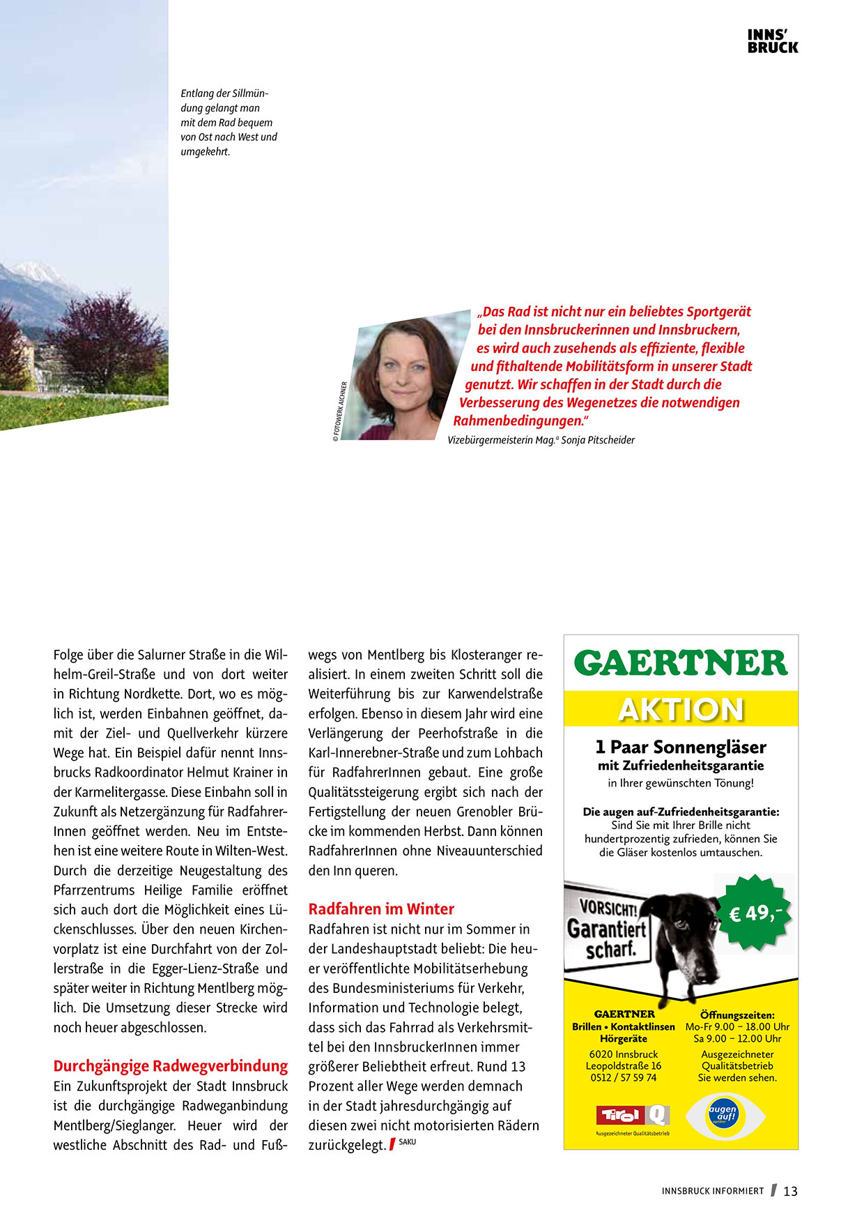 Wege hat. Ein Beispiel dafür nennt Innsbrucks Radkoordinator Helmut Krainer in