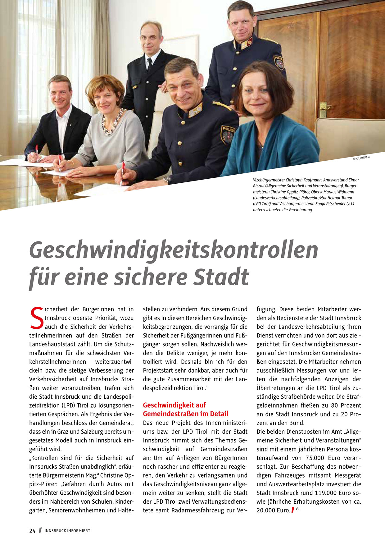Dienst verrichten und von dort aus zielgerichtet für Geschwindigkeitsmessungen auf den Innsbrucker Gemeindestraßen eingesetzt. Die Mitarbeiter nehmen