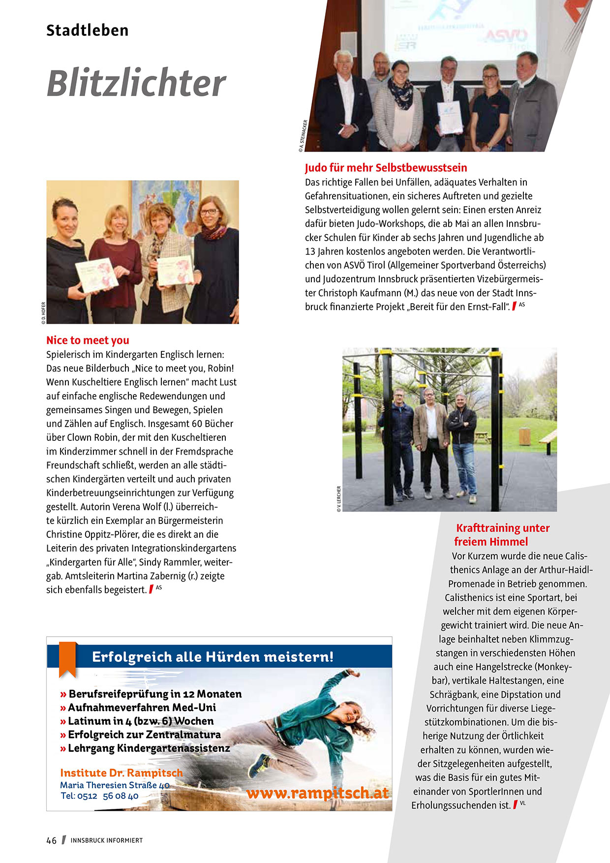 dafür bieten Judo-Workshops, die ab Mai an allen Innsbrucker Schulen für Kinder ab sechs Jahren und Jugendliche ab
