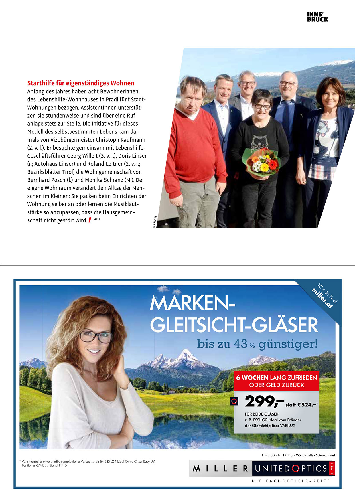 des Lebenshilfe-Wohnhauses in Pradl fünf StadtWohnungen bezogen. AssistentInnen unterstützen sie stundenweise und sind über eine Rufanlage stets zur Stelle. Die Initiative für dieses