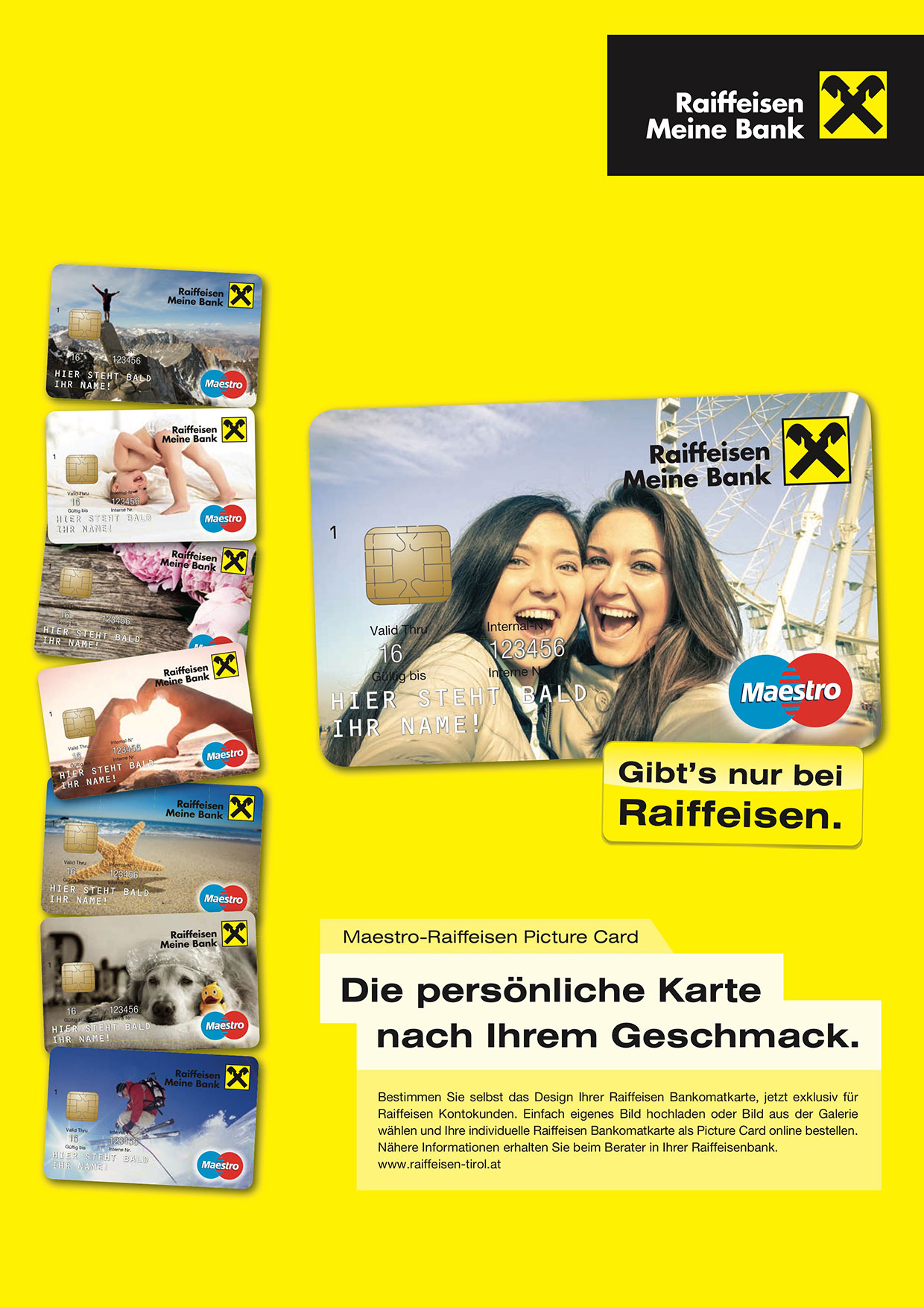 wählen und Ihre individuelle Raiffeisen Bankomatkarte als Picture Card online bestellen.