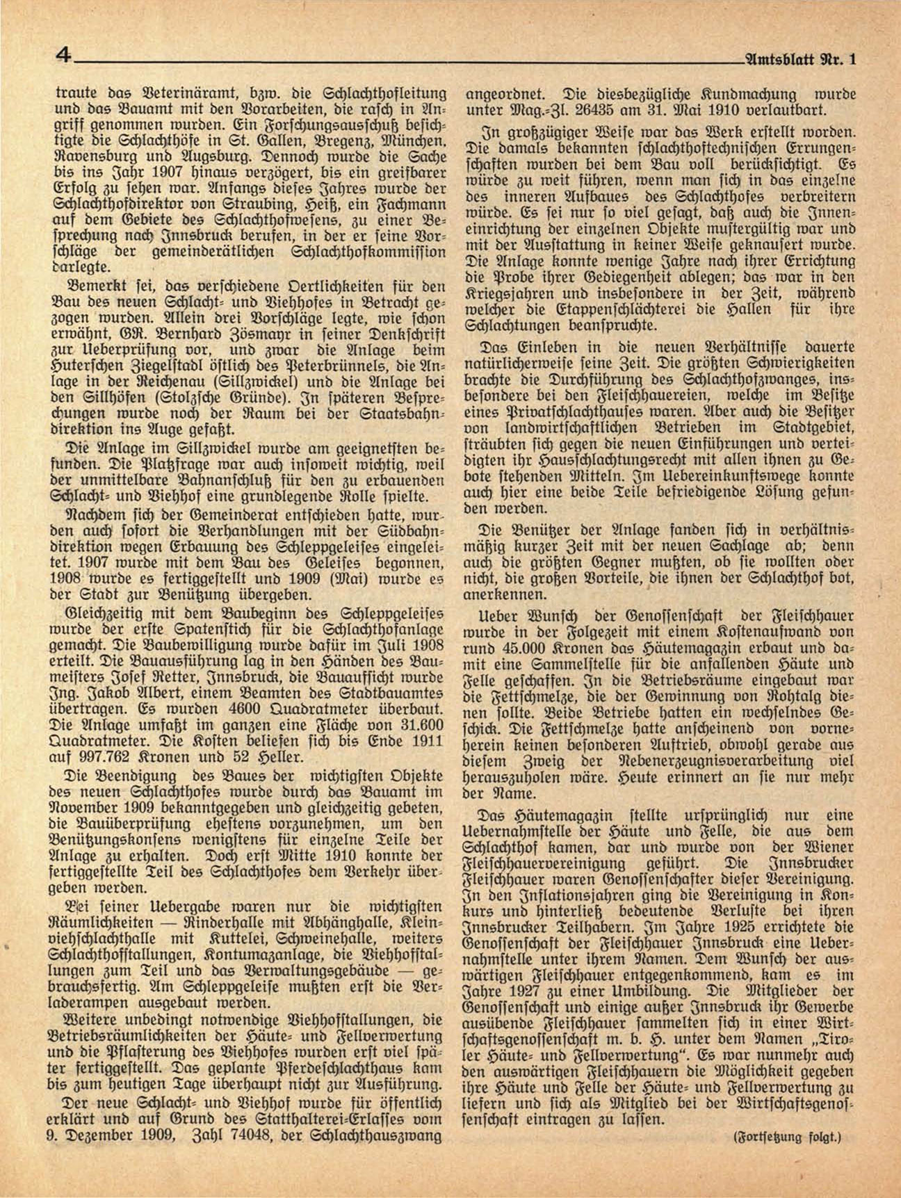auf dem Gebiete des Schlachthofwesens, zu einer Besprechung nach Innsbruck berufen, in der er seine Vorschläge der gemeinderätlichen Schlachthofkommission