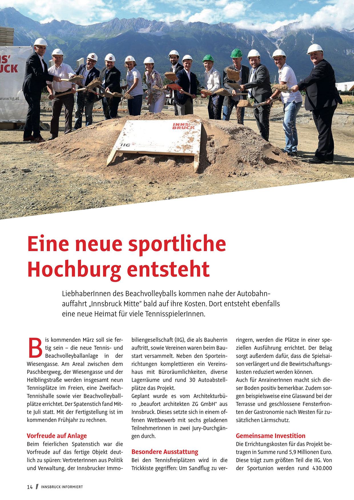 LiebhaberInnen des Beachvolleyballs kommen nahe der Autobahnauffahrt „Innsbruck Mitte“ bald auf ihre Kosten. Dort entsteht ebenfalls
