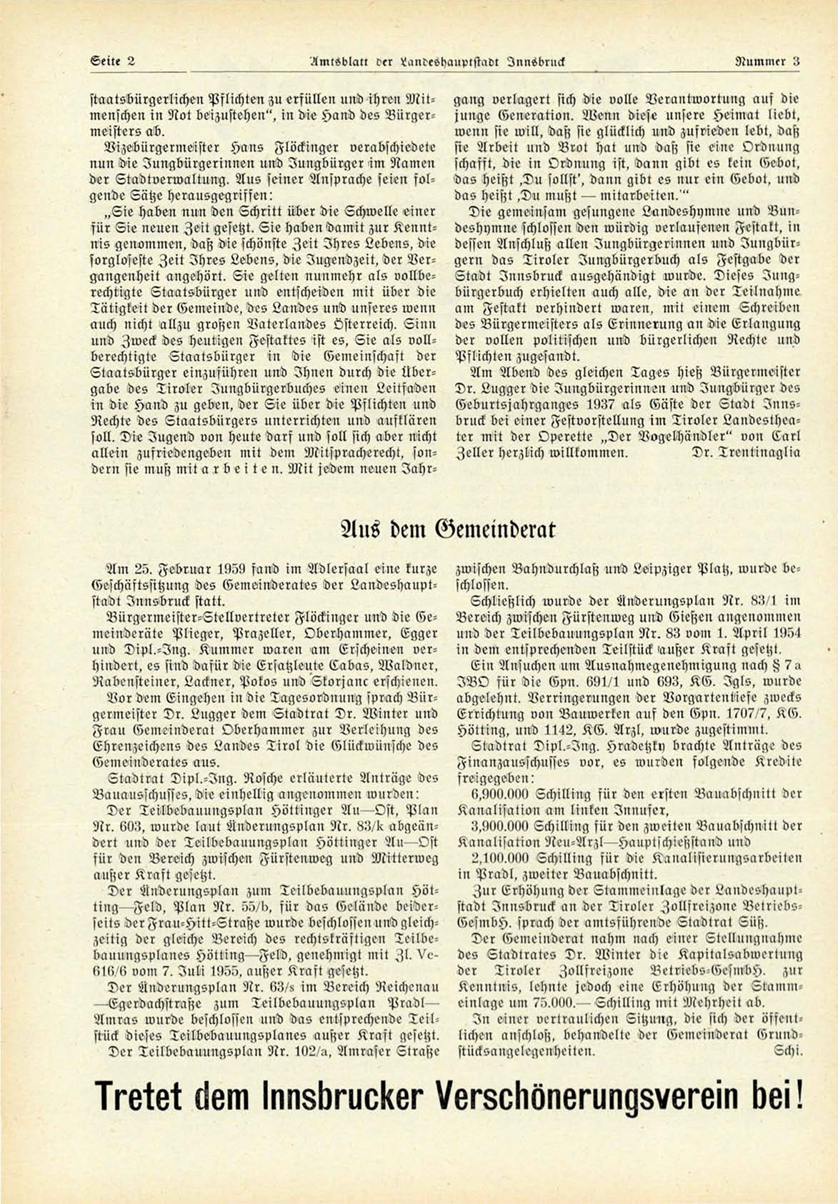 Geschäftssitzung des Gemeinderates der Landeshauptstadt Innsbruck statt.