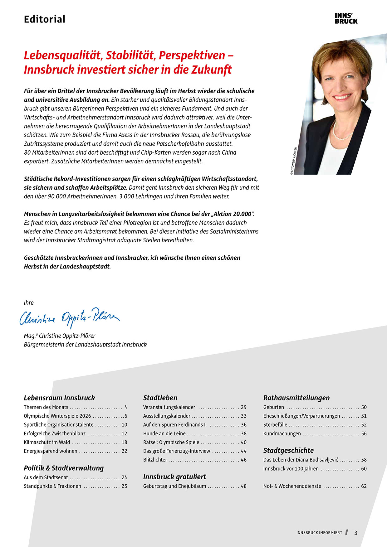 Geschätzte Innsbruckerinnen und Innsbrucker, ich wünsche Ihnen einen schönen