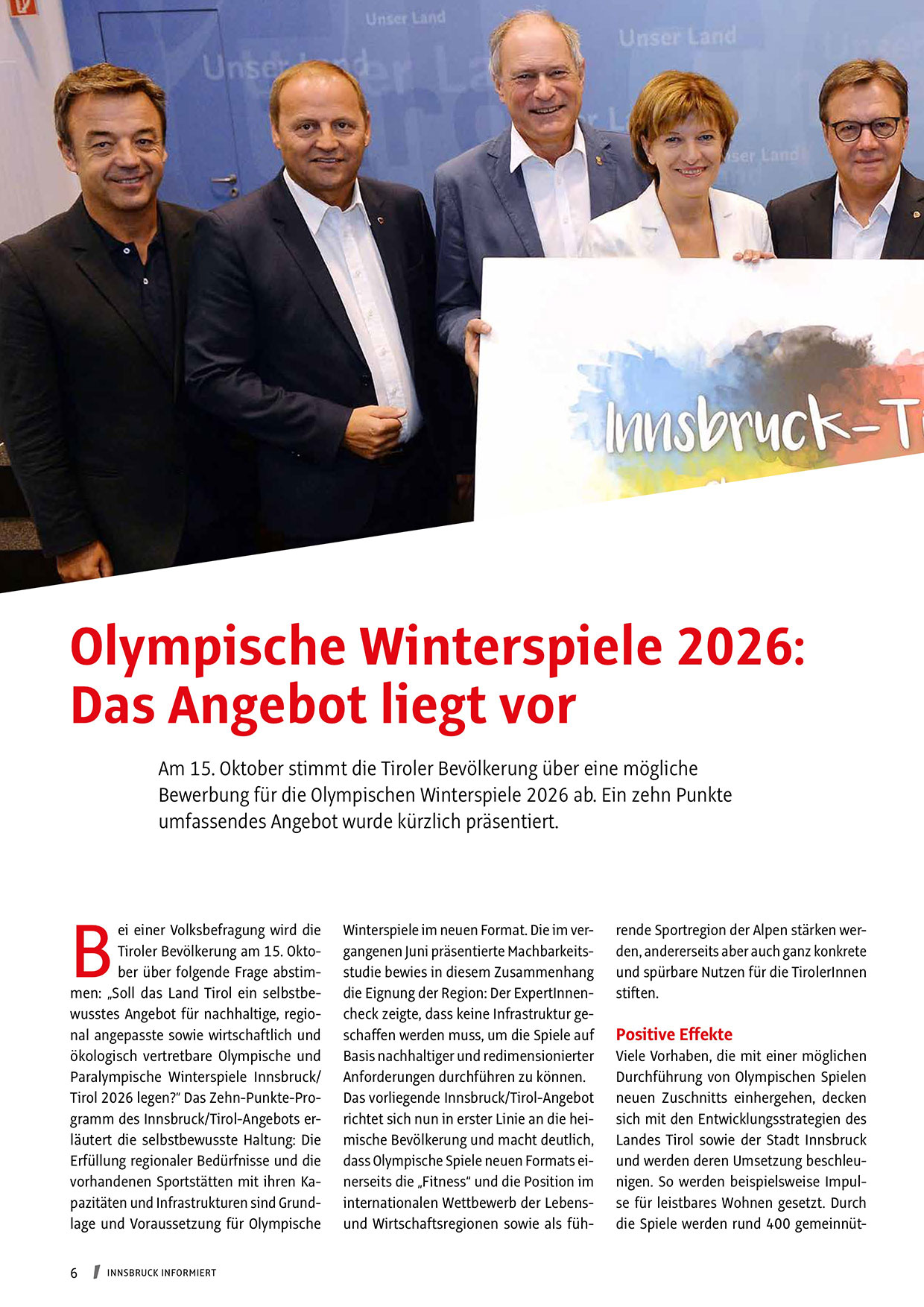 Tirol 2026 legen?“ Das Zehn-Punkte-Programm des Innsbruck/Tirol-Angebots erläutert die selbstbewusste Haltung: Die