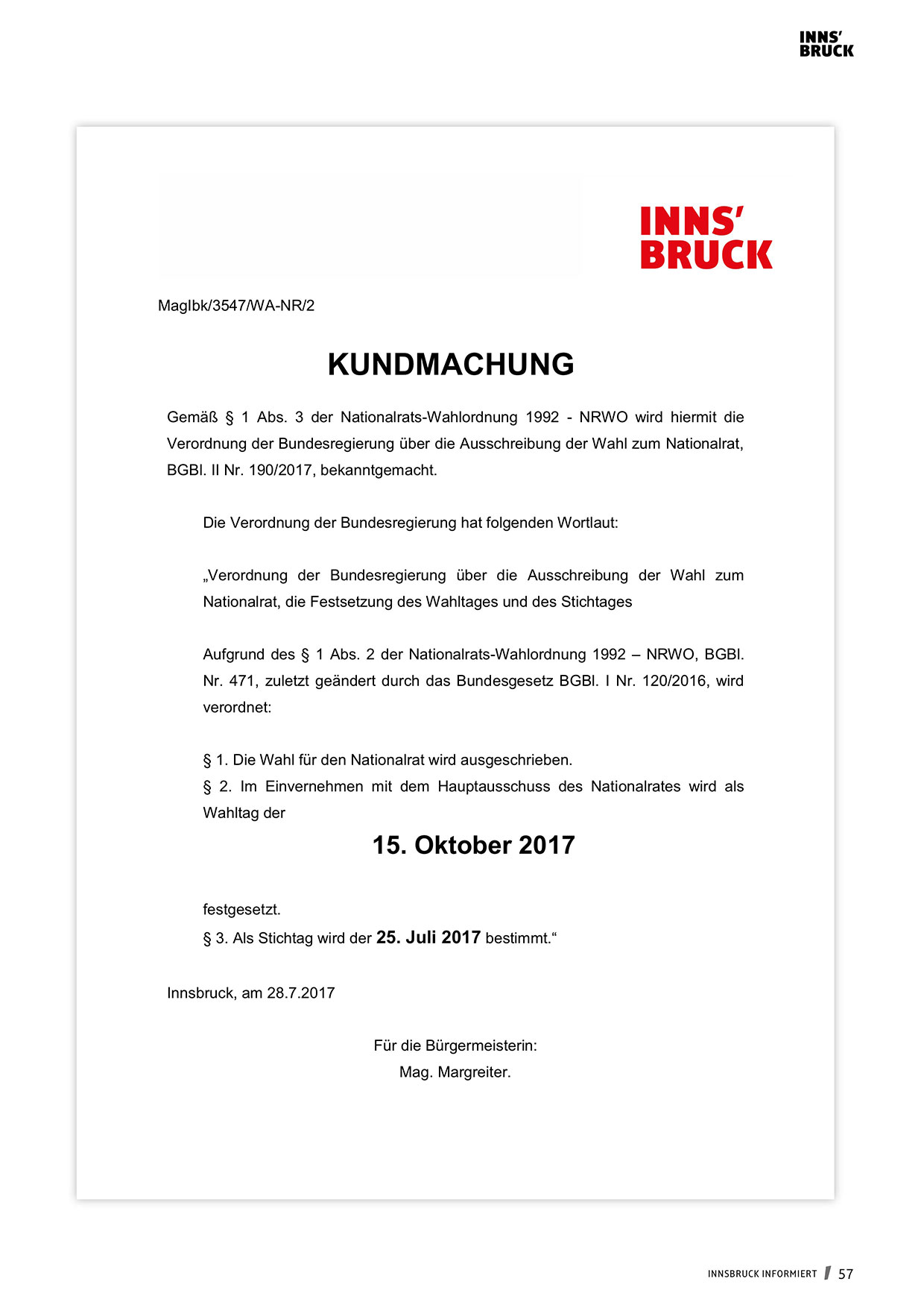 § 1. Die Wahl für den Nationalrat wird ausgeschrieben.