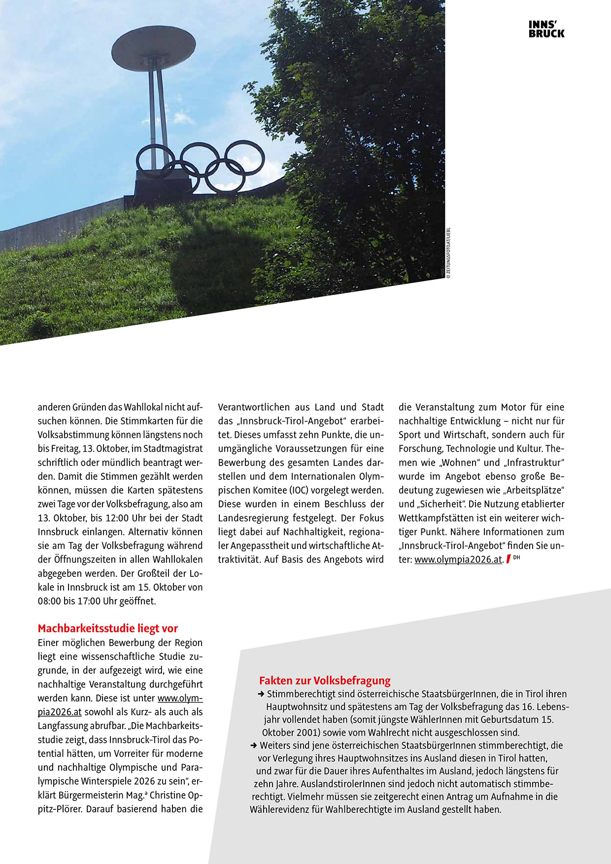 „Innsbruck-Tirol-Angebot“ finden Sie unter: www.olympia2026.at. DH