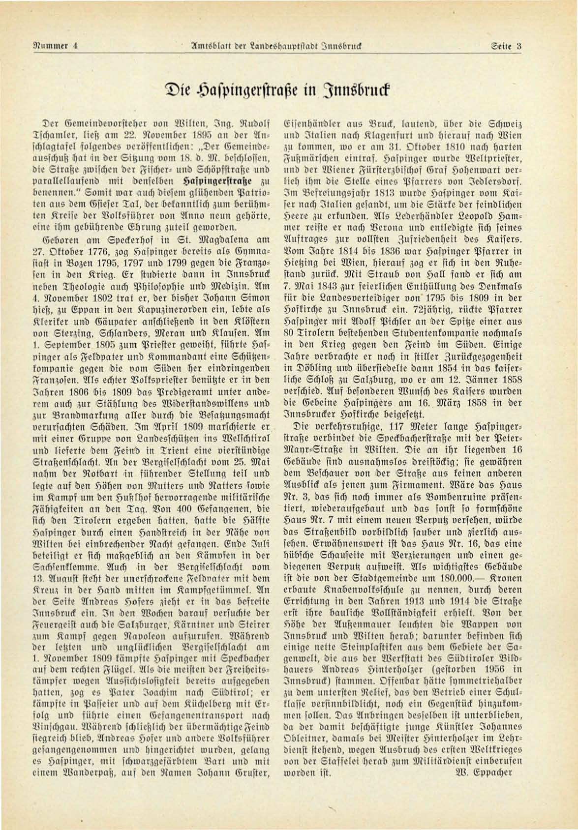 Die verkehrsruhige. 117 Meter lange Haspingerstraße verbindet die Speckbacherstraße mit der PeterMayr-Straße in Wilten. Die an ihr liegenden 16