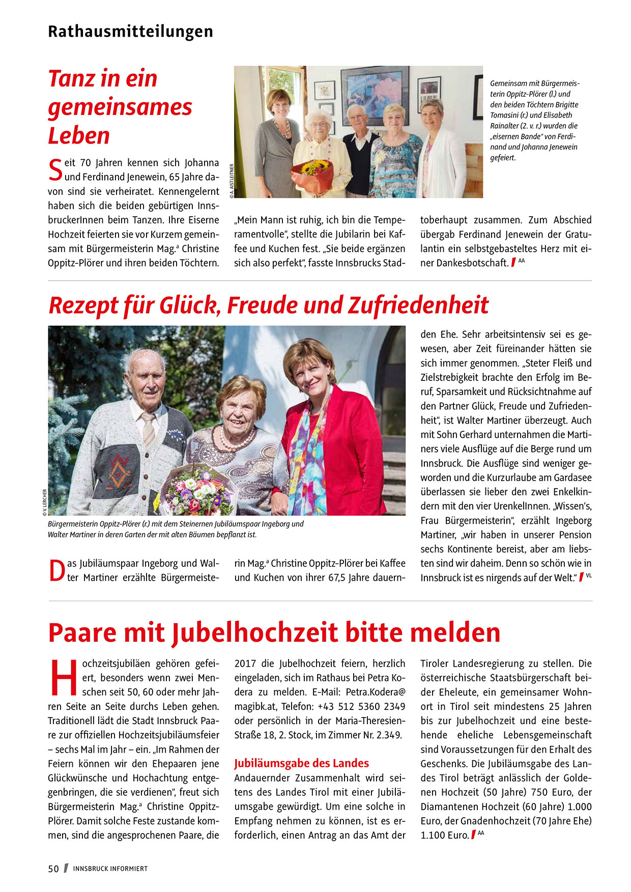 Traditionell lädt die Stadt Innsbruck Paare zur offiziellen Hochzeitsjubiläumsfeier