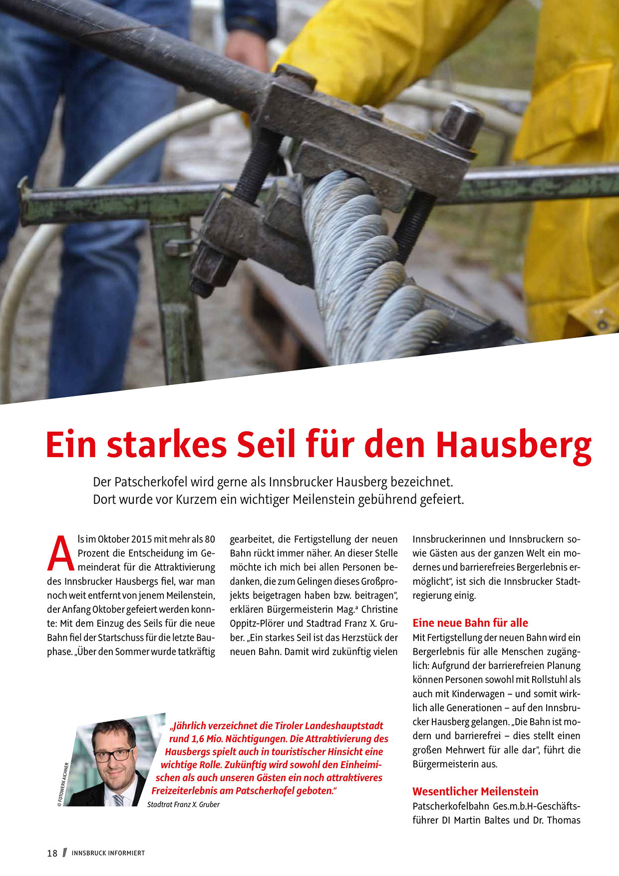 Innsbruckerinnen und Innsbruckern sowie Gästen aus der ganzen Welt ein modernes und barrierefreies Bergerlebnis ermöglicht“, ist sich die Innsbrucker Stadtregierung einig.
