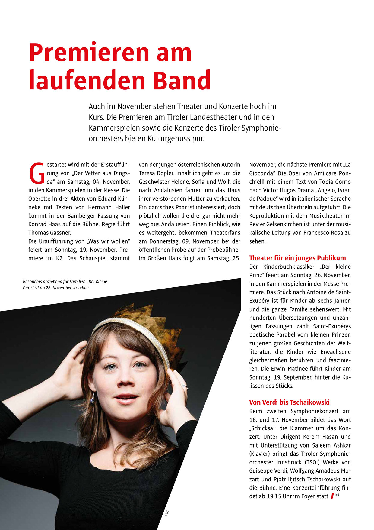Kurs. Die Premieren am Tiroler Landestheater und in den
