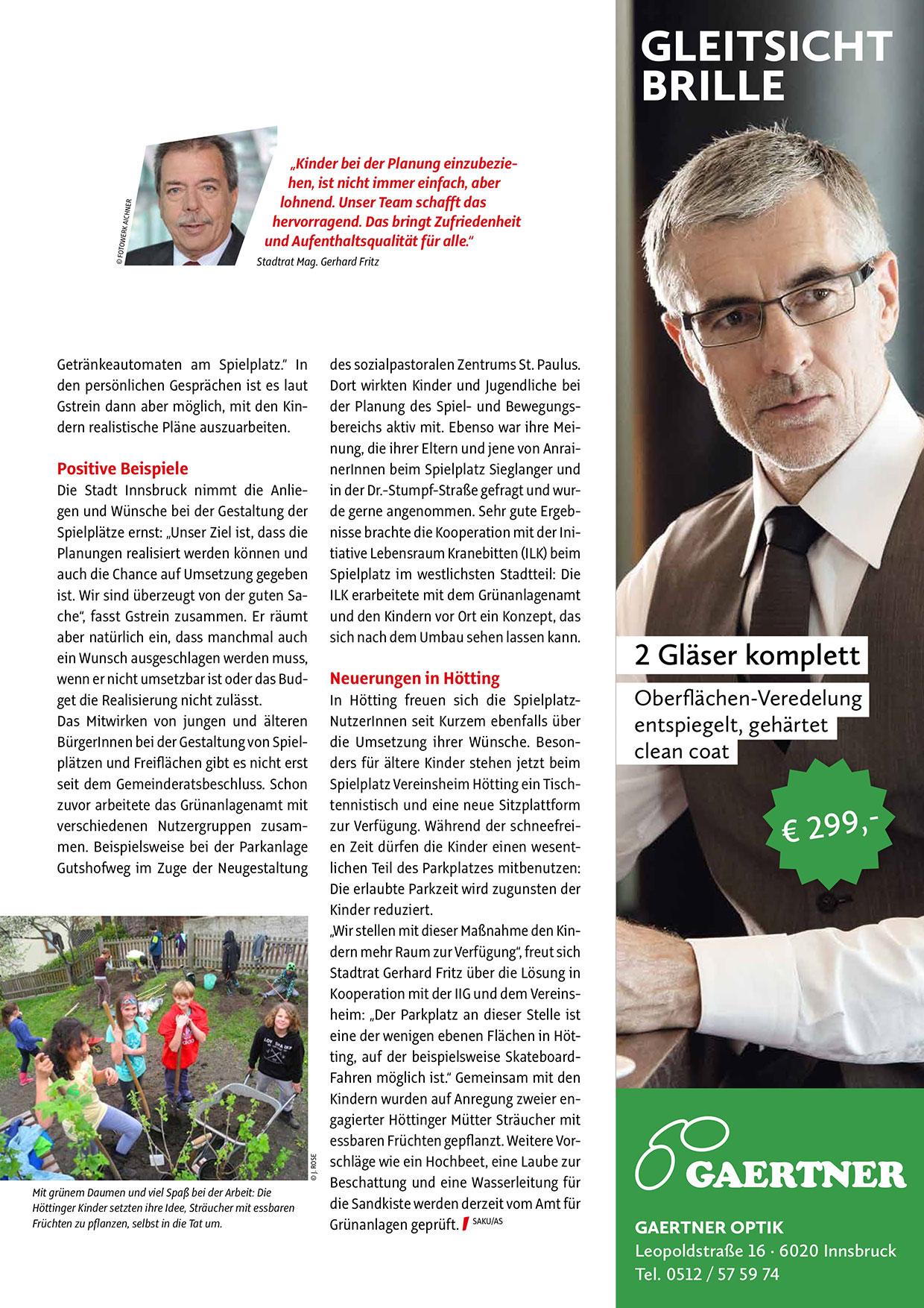 in der Dr.-Stumpf-Straße gefragt und wurde gerne angenommen. Sehr gute Ergebnisse brachte die Kooperation mit der Initiative Lebensraum Kranebitten (ILK) beim