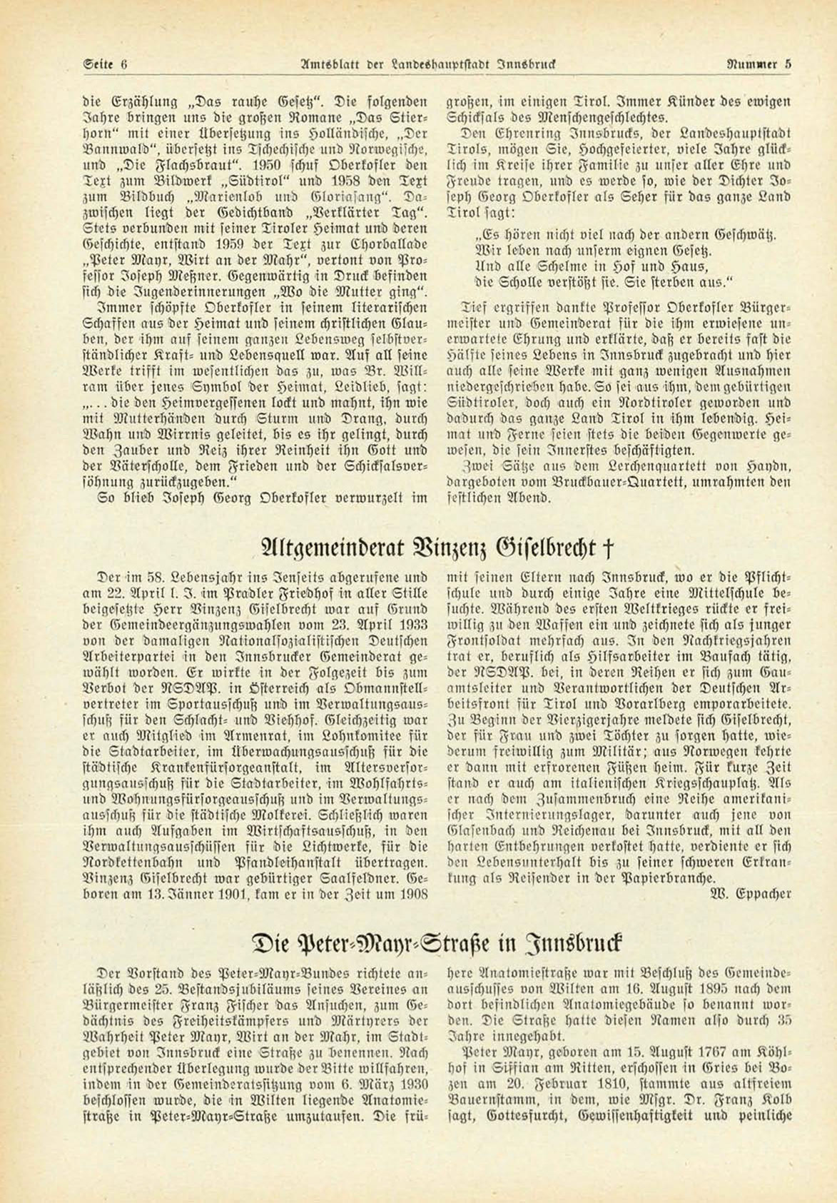 Arbeiterpartei in den Innsbrucker Gemeinderat gewählt worden. Er wirkte in der Folgezeit bis zum