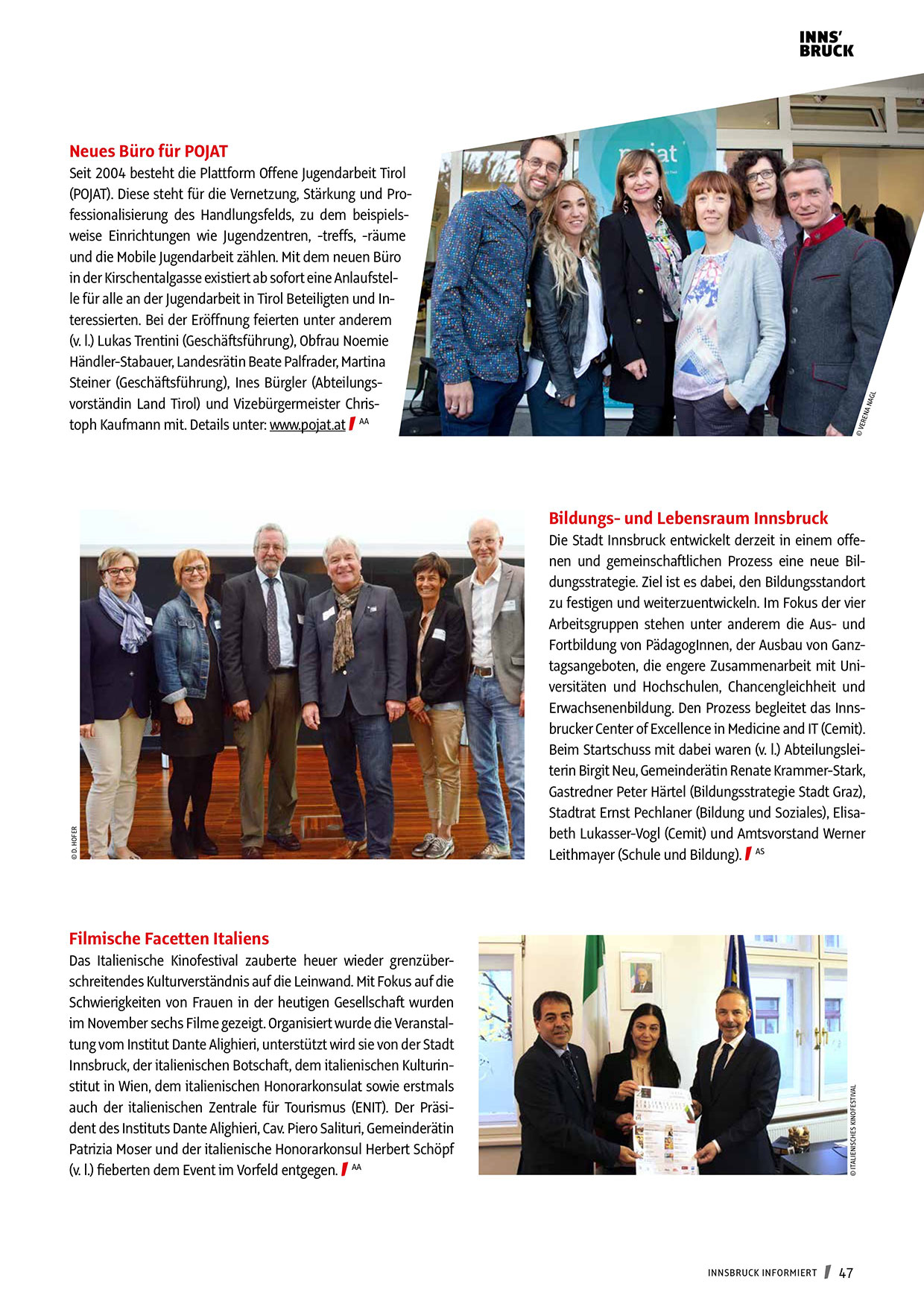 Steiner (Geschäftsführung), Ines Bürgler (Abteilungsvorständin Land Tirol) und Vizebürgermeister Christoph Kaufmann mit. Details unter: www.pojat.at AA