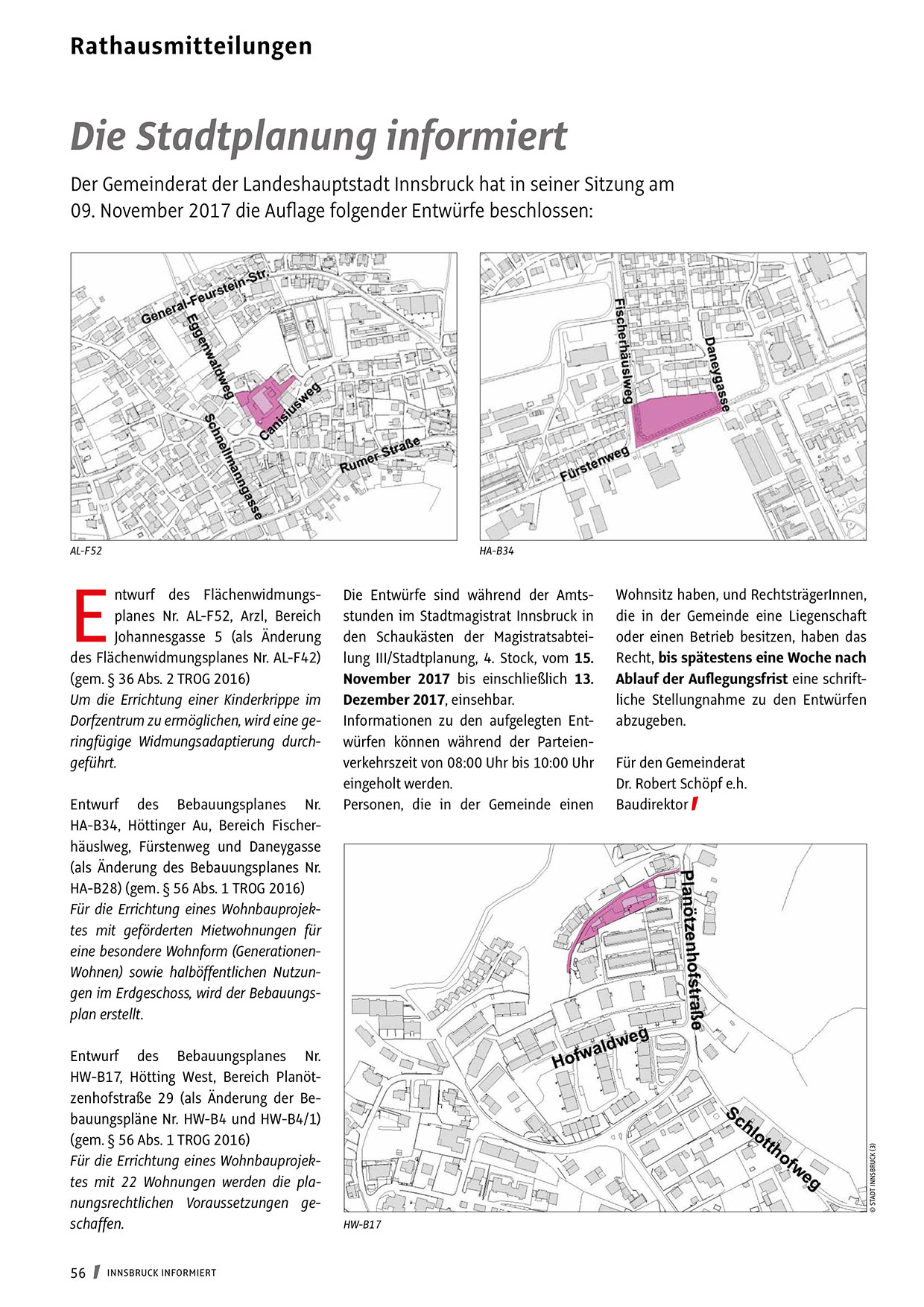 Die Entwürfe sind während der Amtsstunden im Stadtmagistrat Innsbruck in
