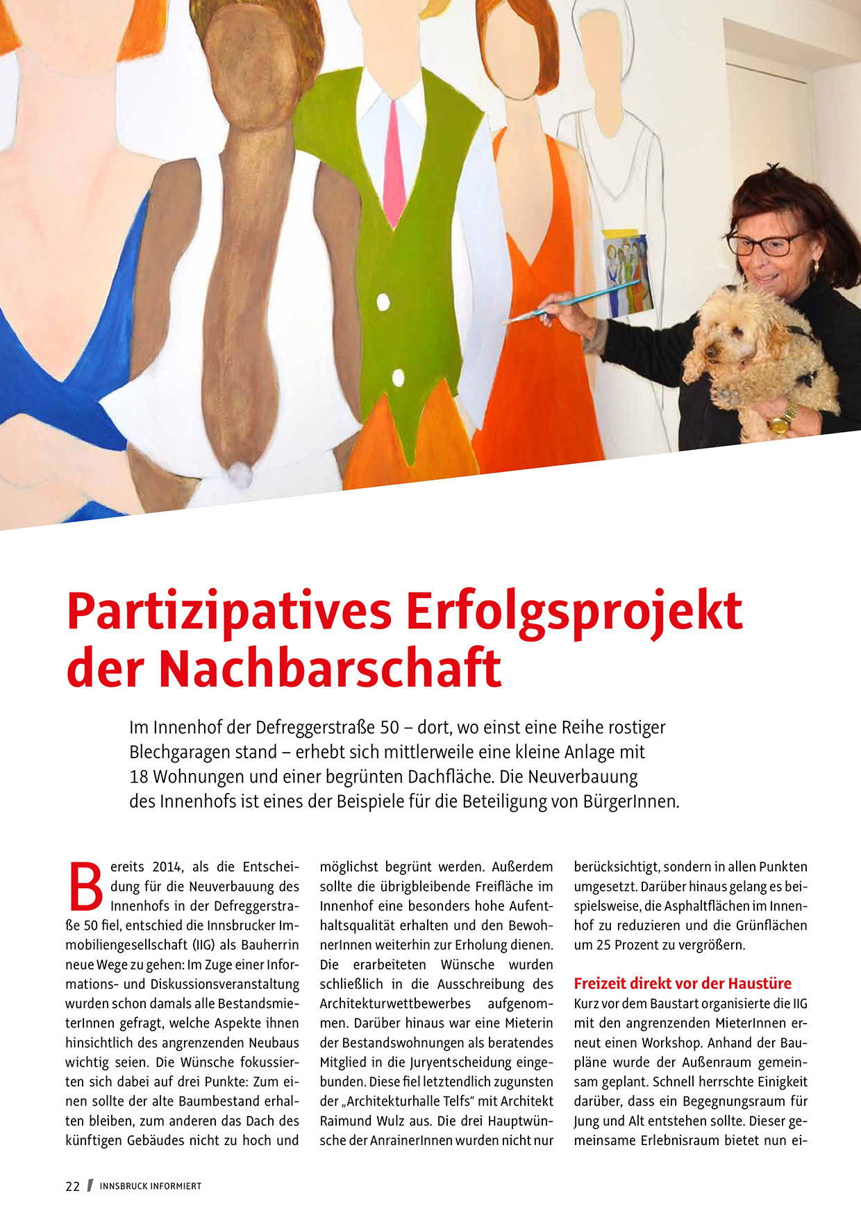 Innenhofs in der Defreggerstraße 50 fiel, entschied die Innsbrucker Immobiliengesellschaft (IIG) als Bauherrin