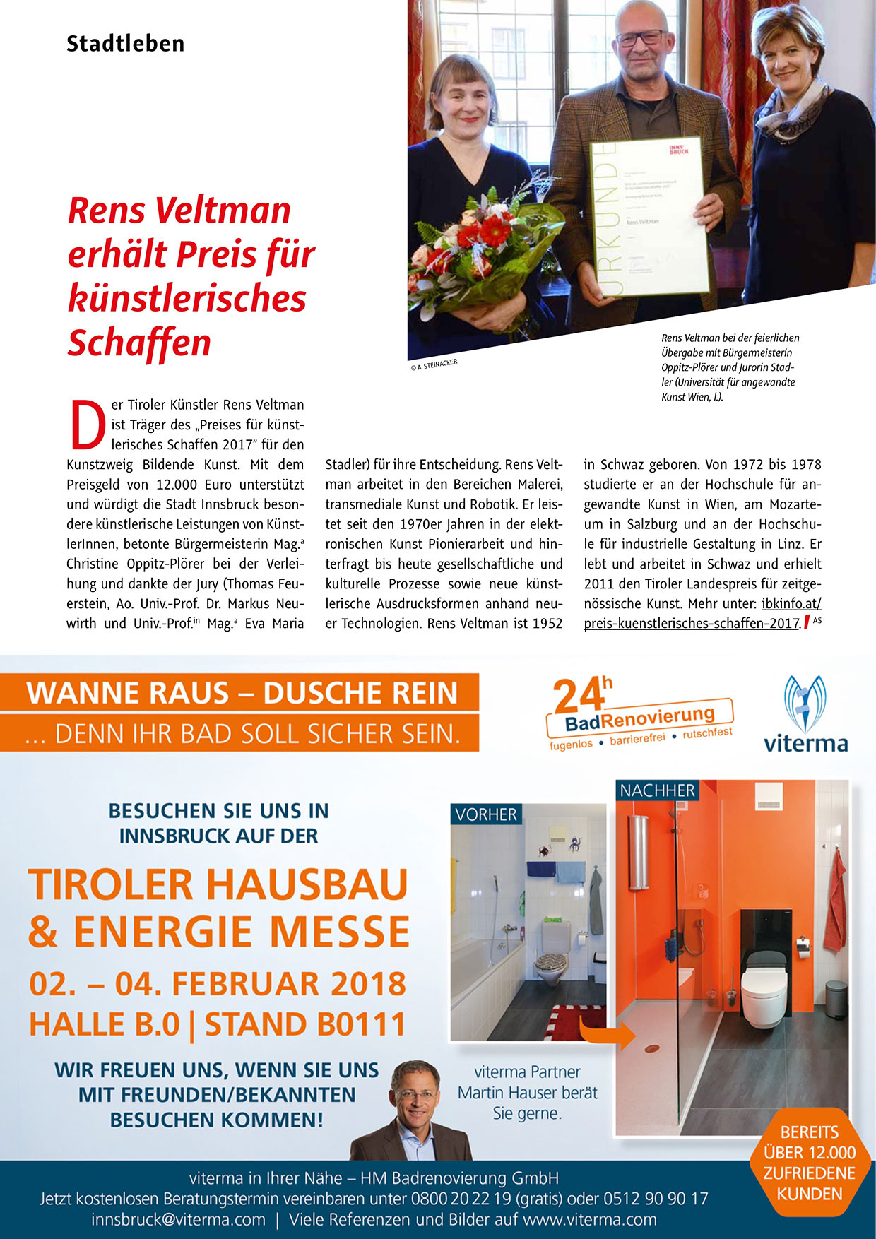 und würdigt die Stadt Innsbruck besondere künstlerische Leistungen von KünstlerInnen, betonte Bürgermeisterin Mag.a