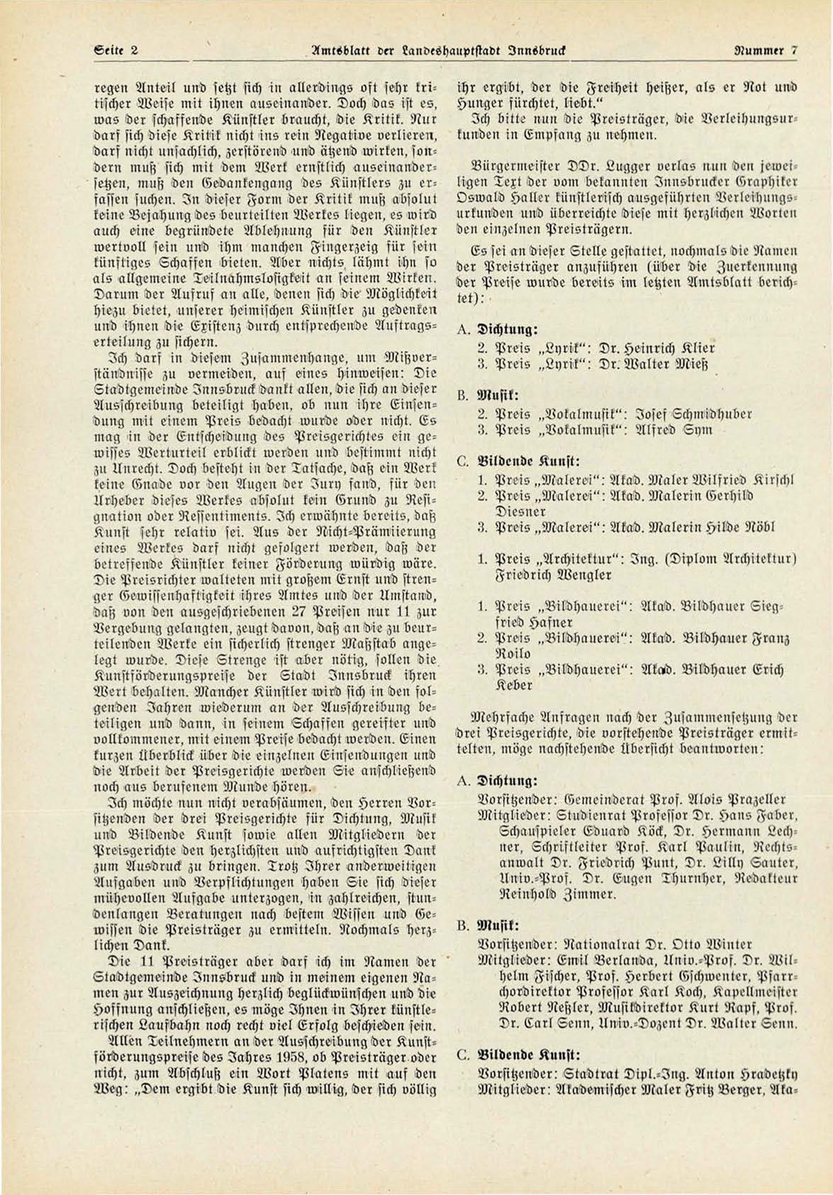 Allen Teilnehmern an der Ausschreibung der Kunstsörderuugspreise des Jahres 1958, ob Preisträger oder