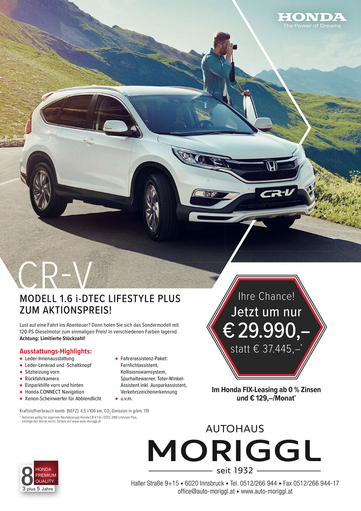 * Aktionen gültig für lagernde Neufahrzeuge Honda CR-V 1.6 i-DTEC 2WD Lifestyle Plus,