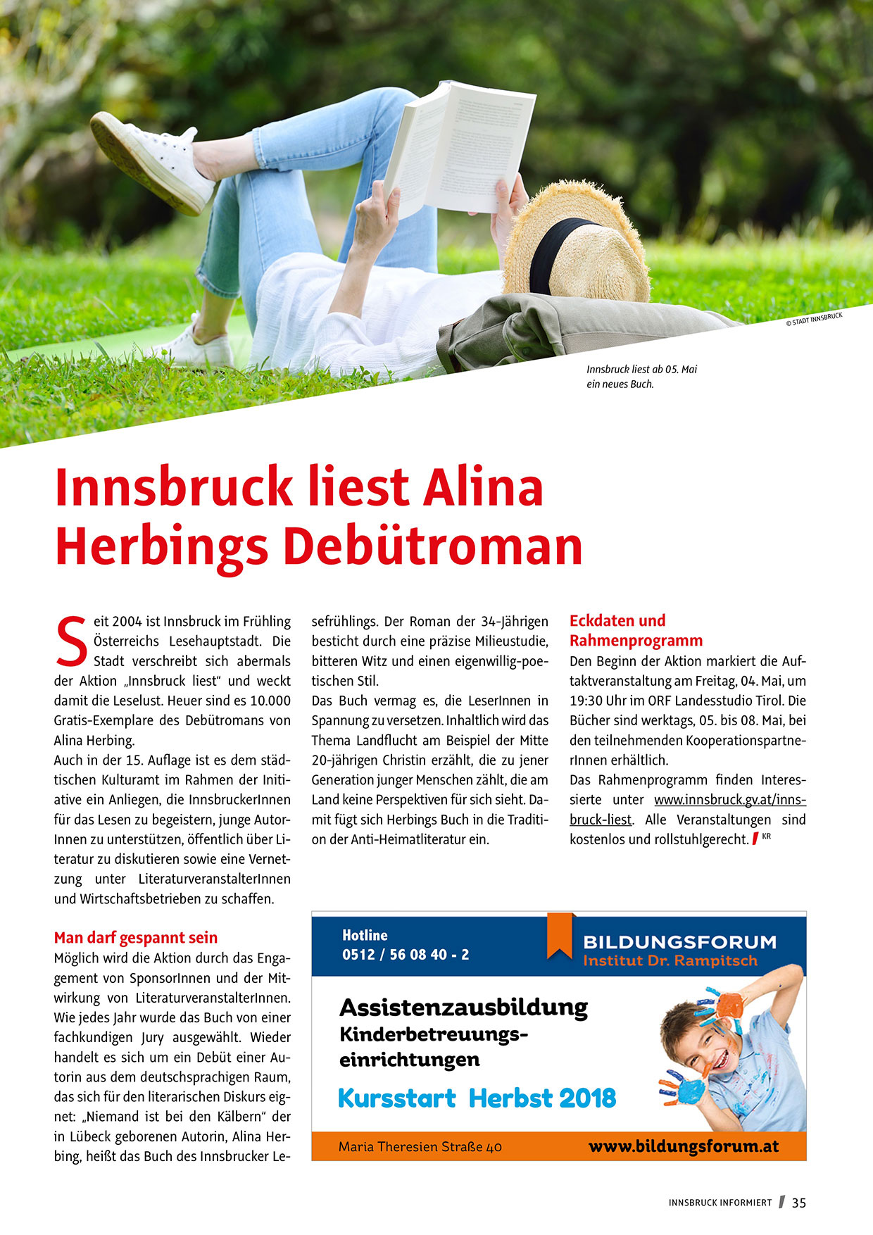 in Lübeck geborenen Autorin, Alina Herbing, heißt das Buch des Innsbrucker Le-