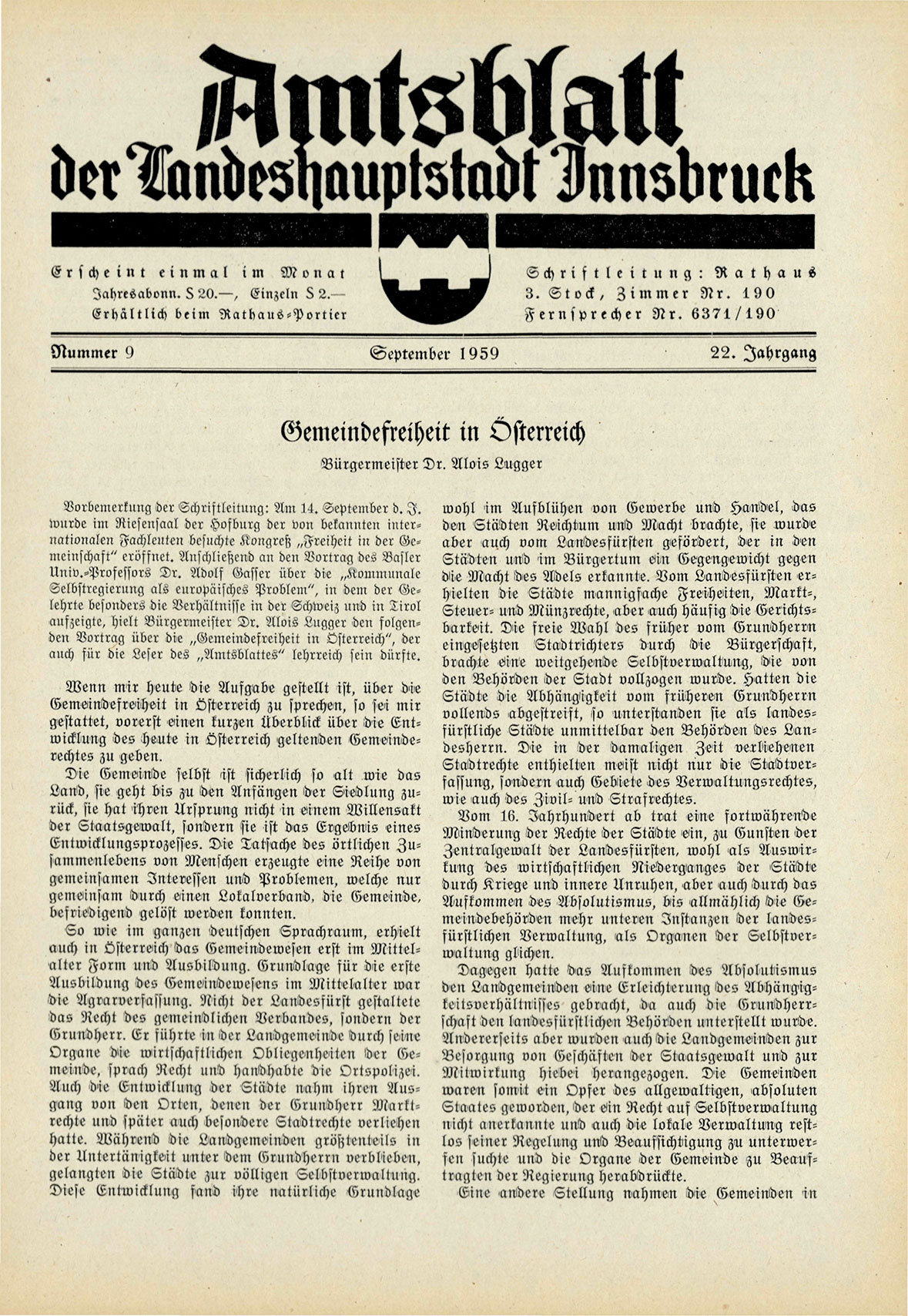 aufzeigte, hielt Bürgermeister D r . Alois Lugger den folgenden Vortrag über die „Gemeindefreiheit in Osterreich", der