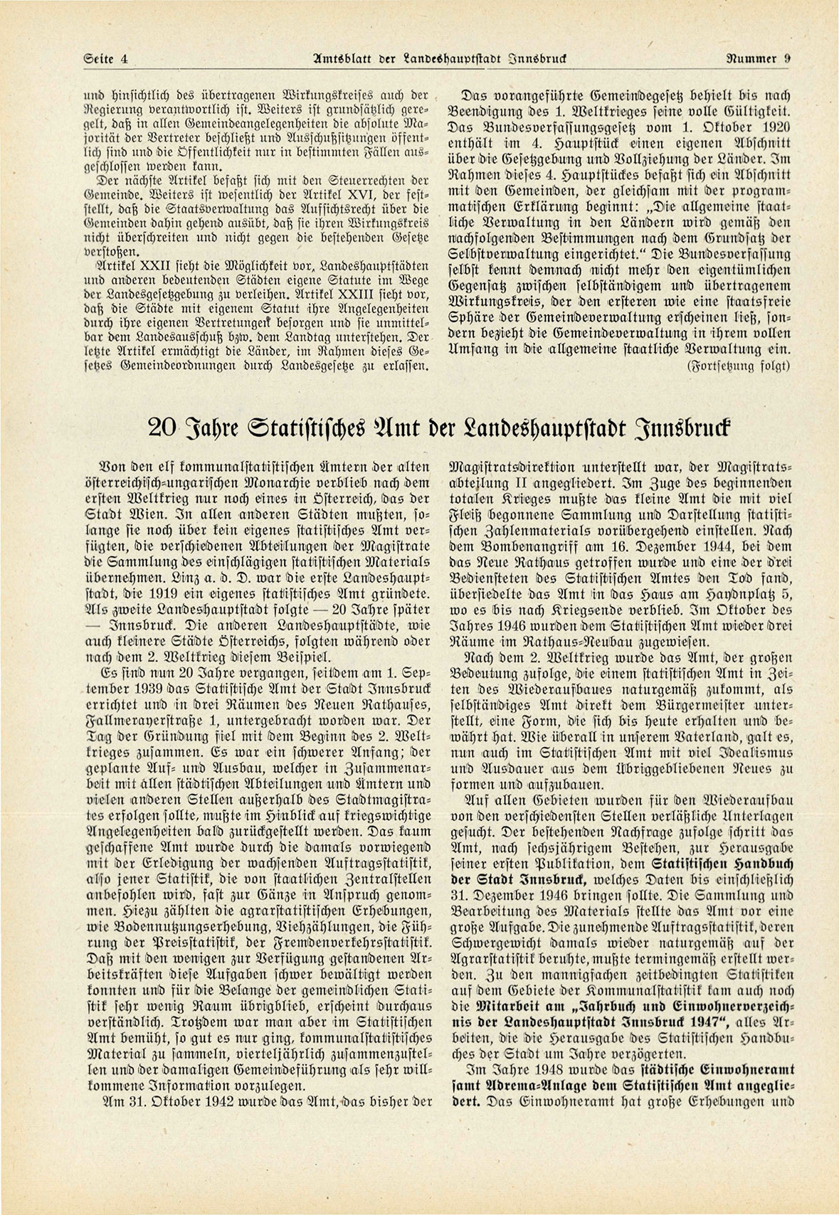 Es sind nun 20 Jahre vergangen, seitdem am 1. September 1939 das Statistische Amt der Stadt Innsbruck
