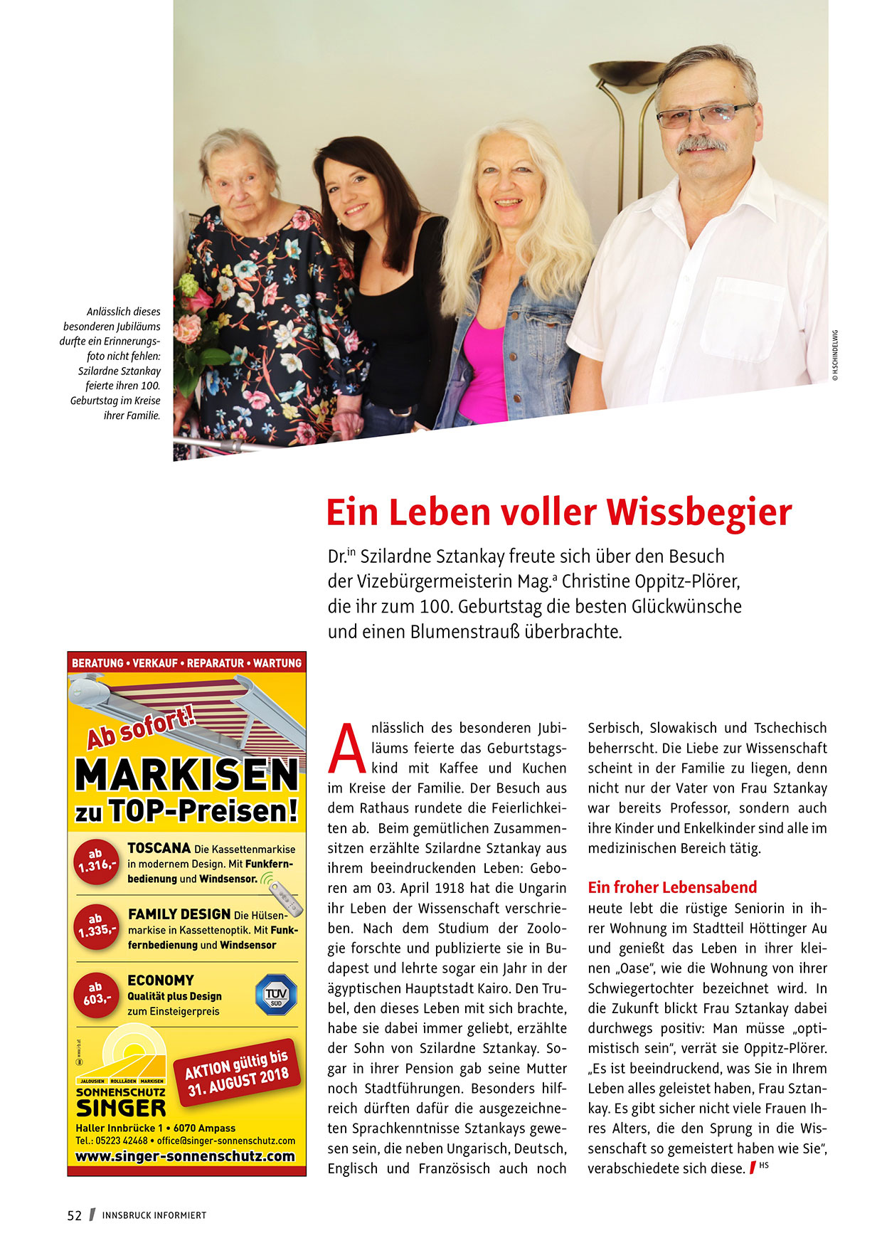 Leben alles geleistet haben, Frau Sztankay. Es gibt sicher nicht viele Frauen Ihres Alters, die den Sprung in die Wissenschaft so gemeistert haben wie Sie“,