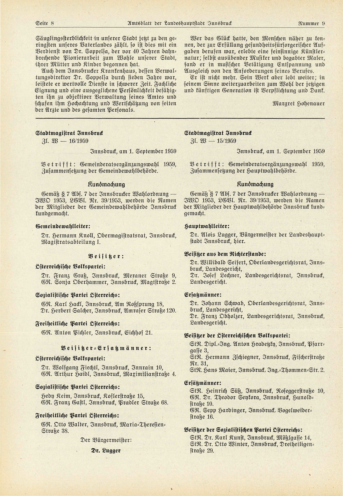 der Mitglieder der Hauptwahlbehörde Innsbruck tnndgemacht.