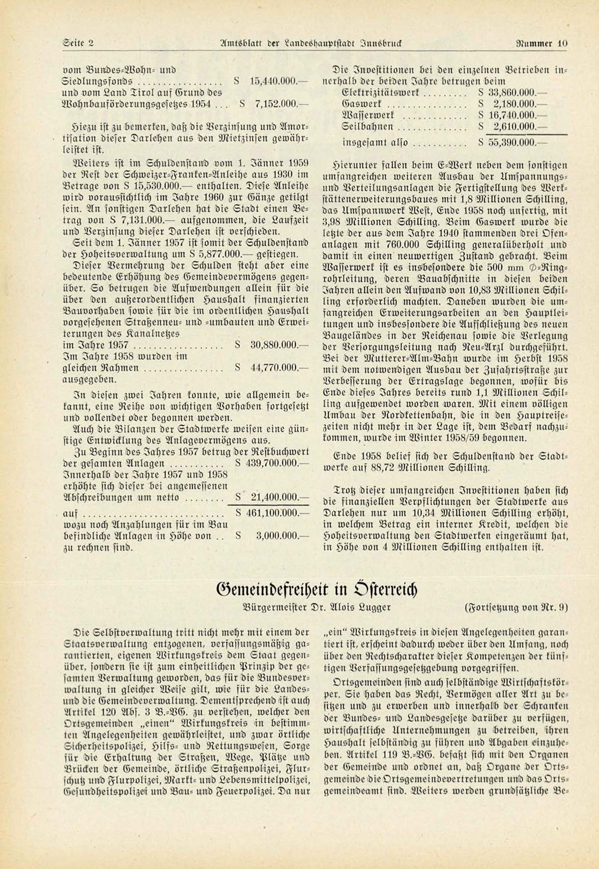 Ende 1958 belief sich der Schuldenstand der Sladtwerke auf 88,72 Millionen Schilling,