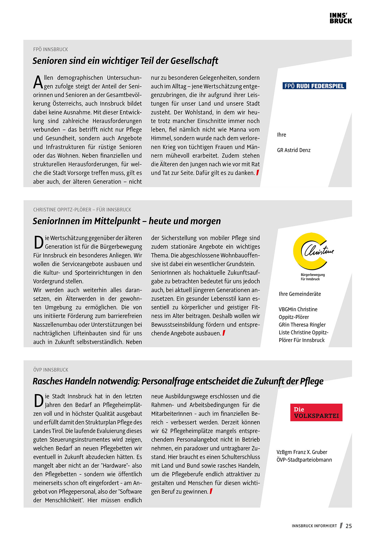 llen demographischen Untersuchungen zufolge steigt der Anteil der Seniorinnen und Senioren an der Gesamtbevölkerung Österreichs, auch Innsbruck bildet