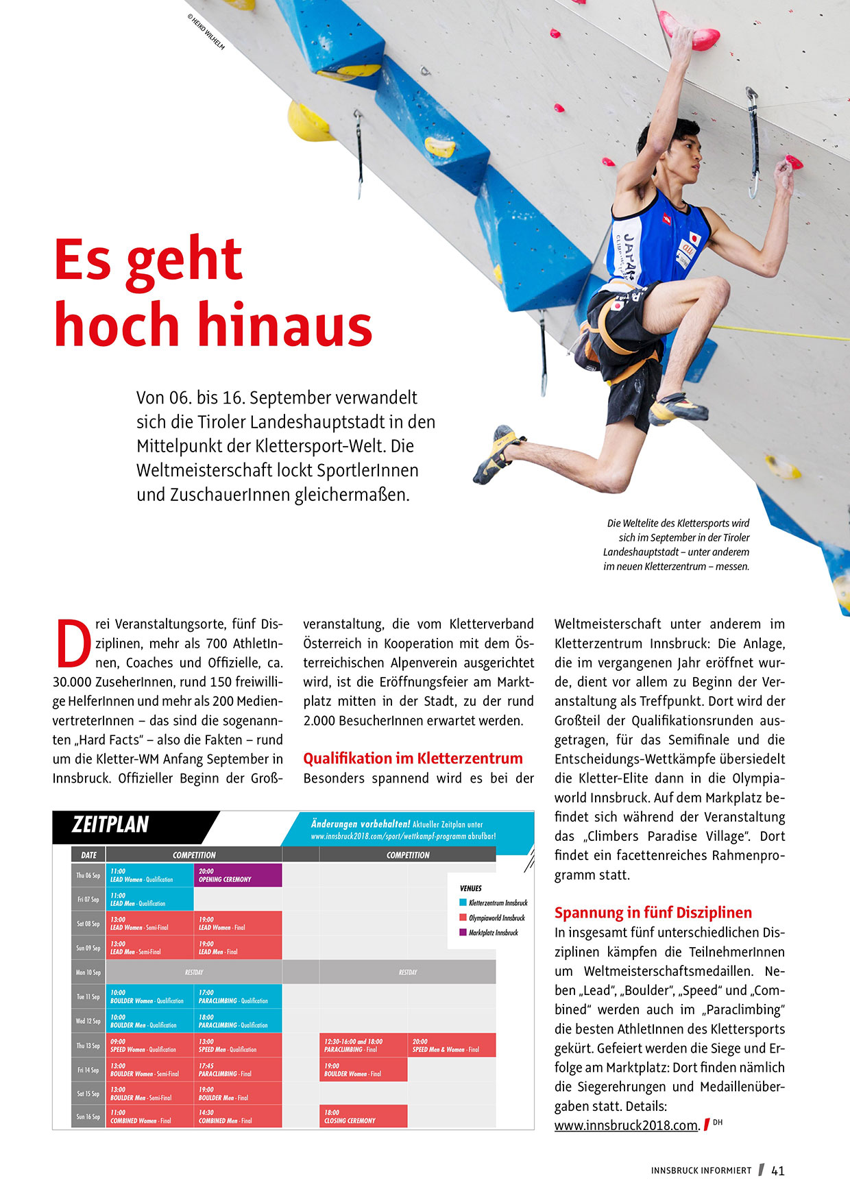 die Kletter-Elite dann in die Olympiaworld Innsbruck. Auf dem Markplatz befindet sich während der Veranstaltung