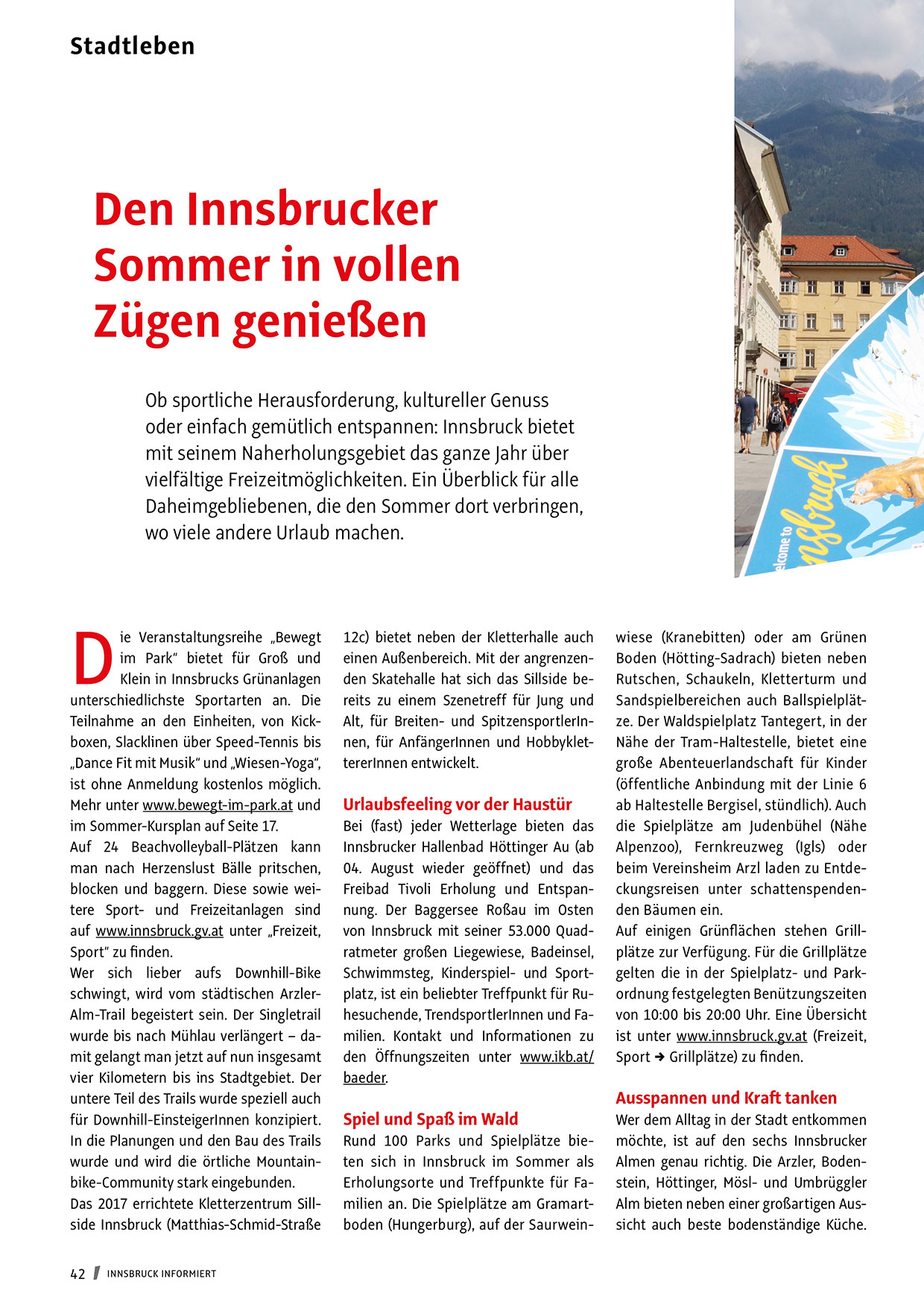 Rund 100 Parks und Spielplätze bieten sich in Innsbruck im Sommer als