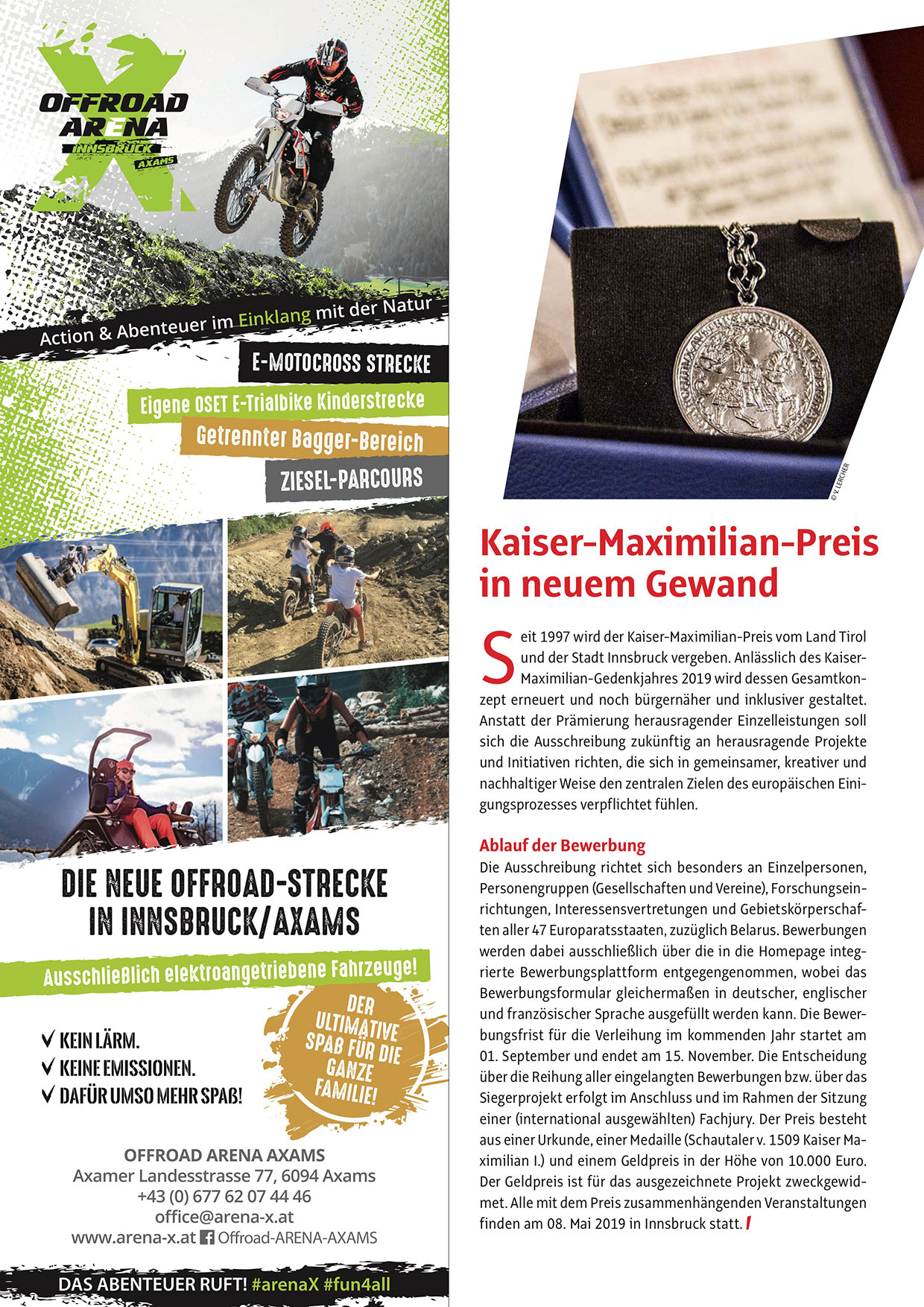 und der Stadt Innsbruck vergeben. Anlässlich des KaiserMaximilian-Gedenkjahres 2019 wird dessen Gesamtkonzept erneuert und noch bürgernäher und inklusiver gestaltet.