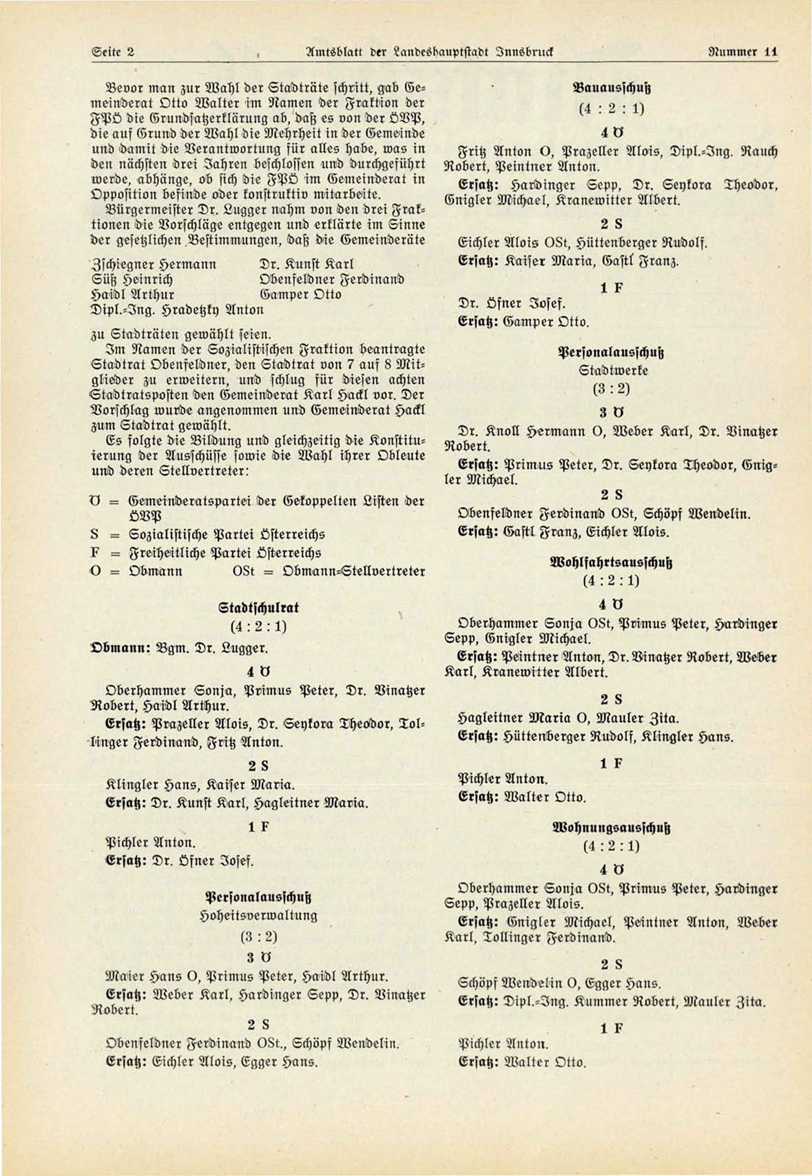 Ersatz: Prazeller Alois, Dr. Seykora Theodor, TolMnger Ferdinand, Fritz Anton.
